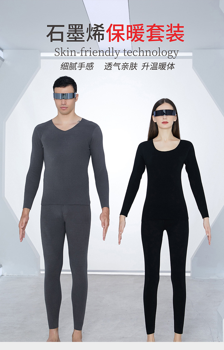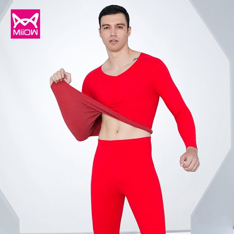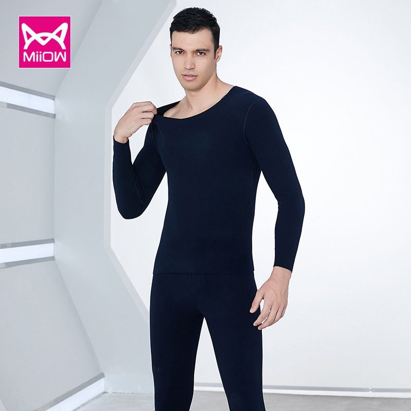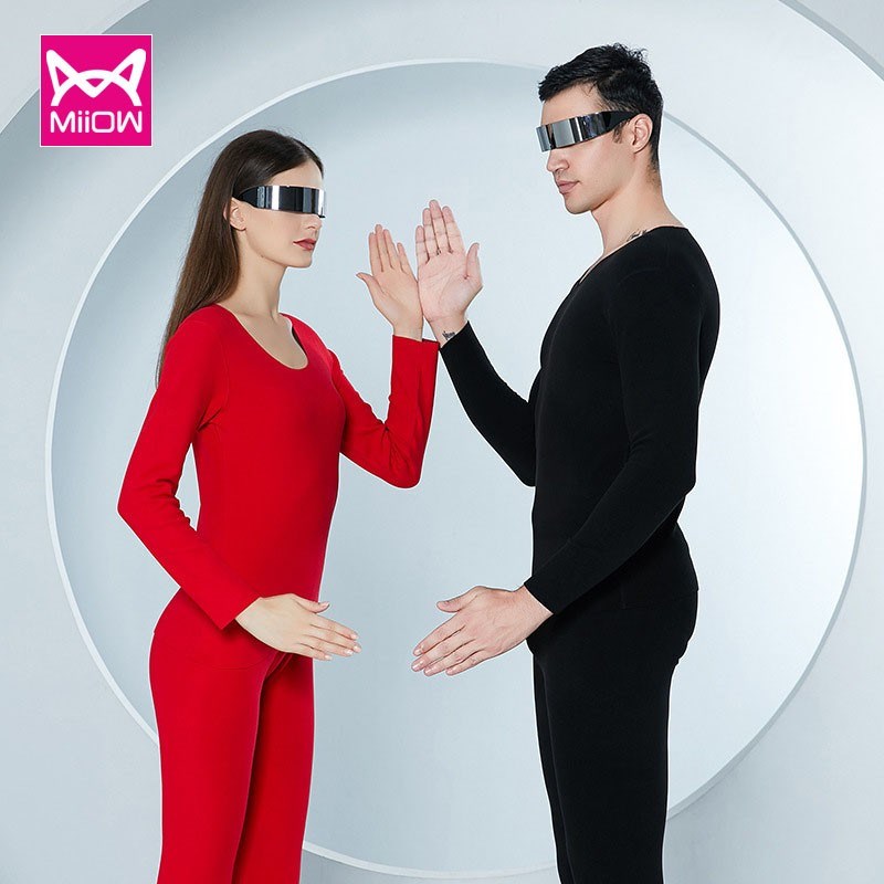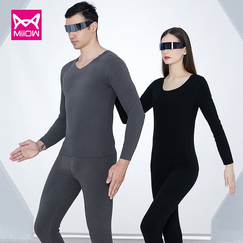MiiOW/猫人打底保暖内衣男女士秋冬情侣石墨烯保暖修身套装经典圆领打底秋衣秋裤788A-B