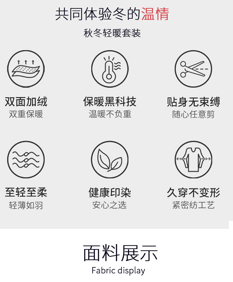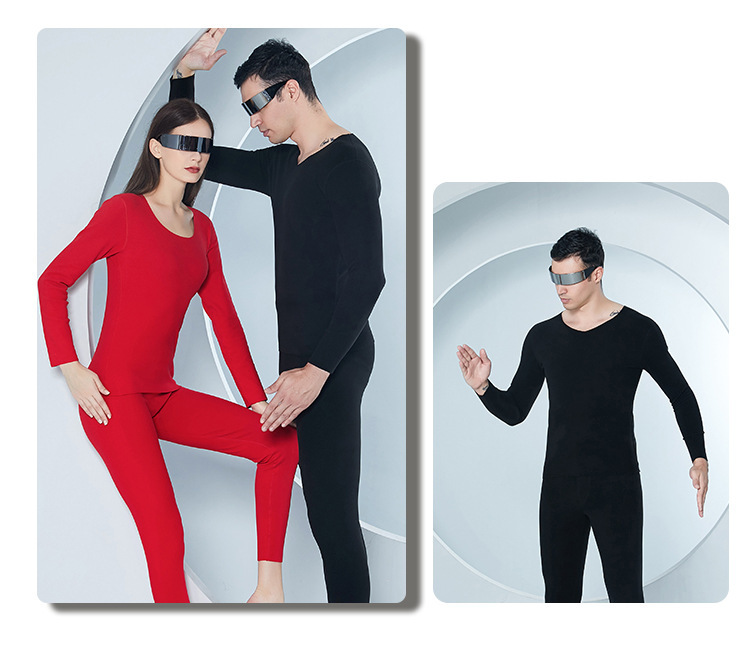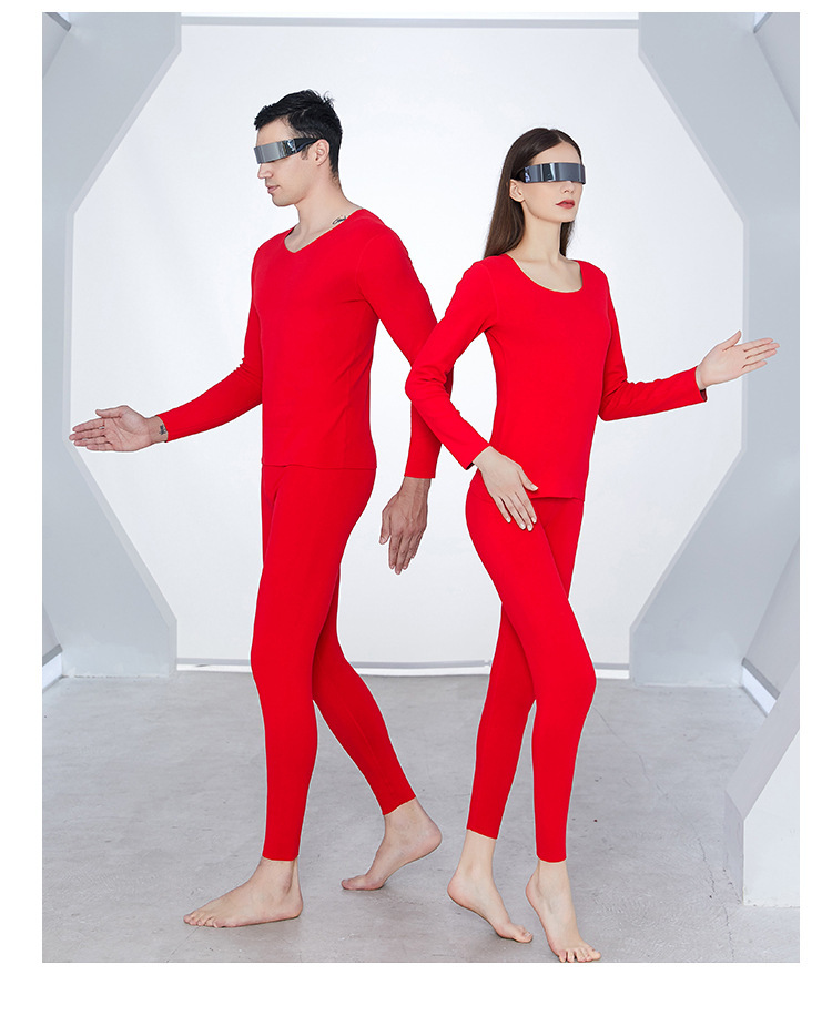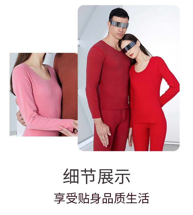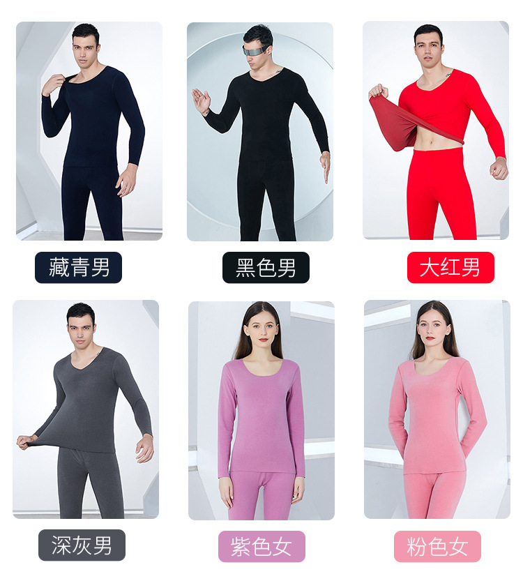 MiiOW/猫人打底保暖内衣男女士秋冬情侣石墨烯保暖修身套装经典圆领打底秋衣秋裤788A-B