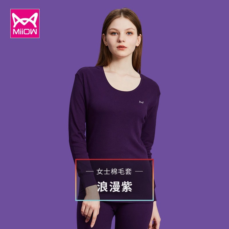 MiiOW/猫人保暖内衣女士秋冬季秋衣秋裤纯棉修身恒温美体贴身棉毛衫套装MRU20302410