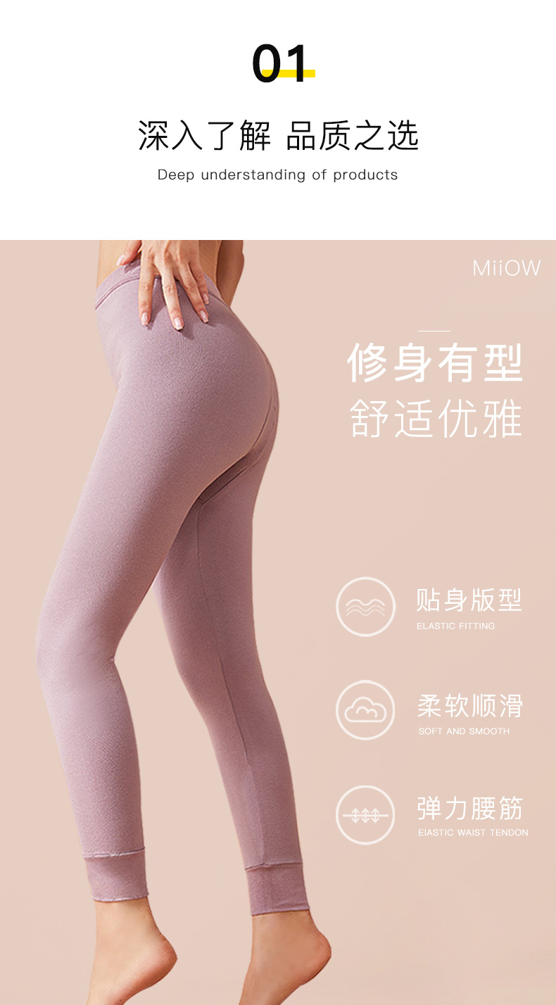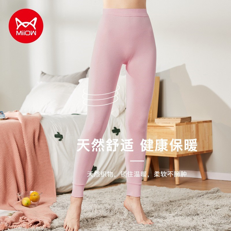 MiiOW/猫人秋季新品全棉女士罗纹单裤保暖秋裤新疆长绒棉高腰保暖打底裤M19029