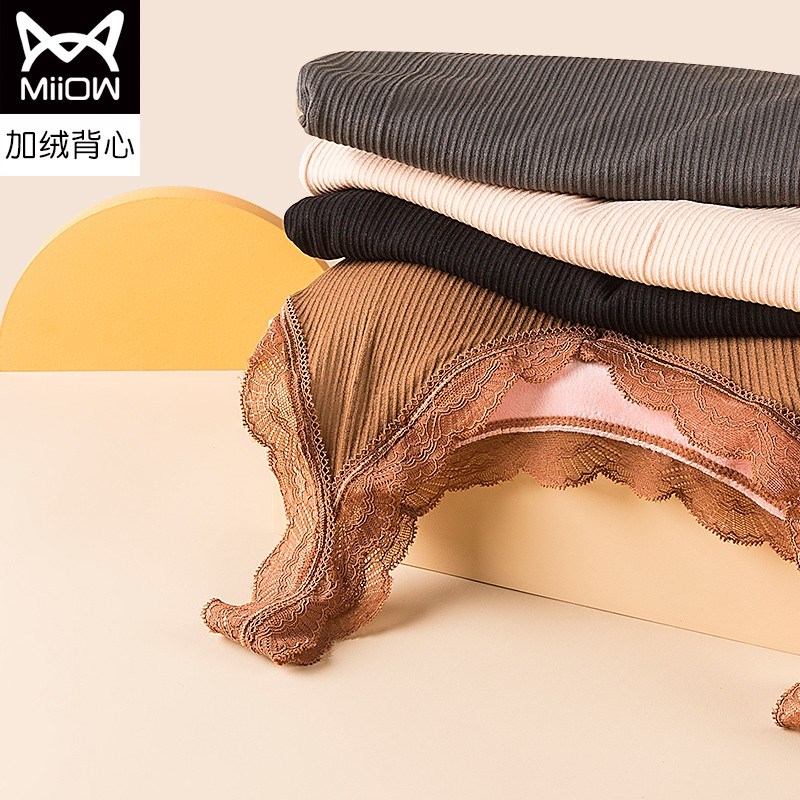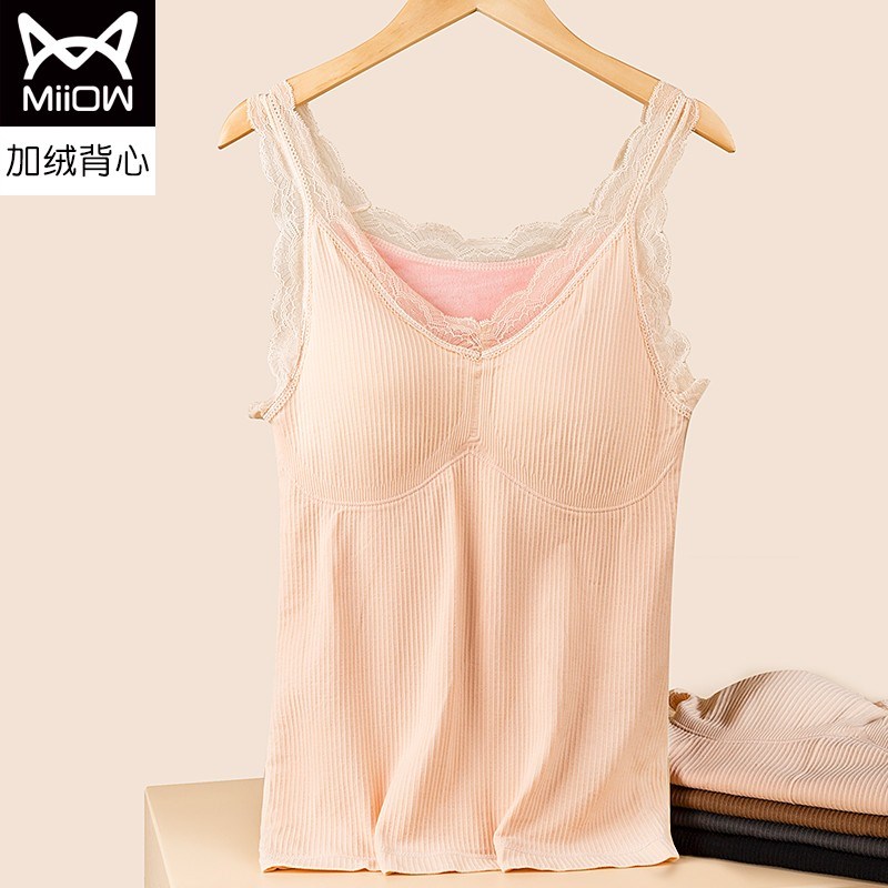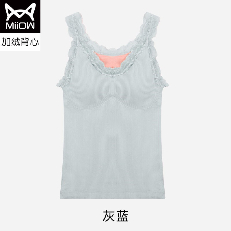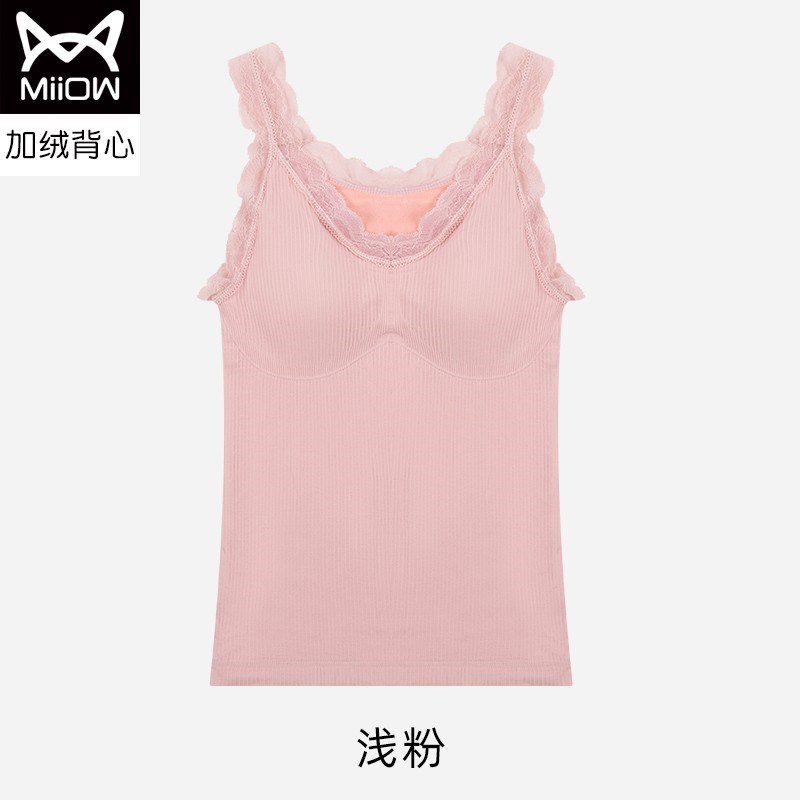 MiiOW/猫人石墨烯海姆绒钻石背心蕾丝性感文胸式保暖背心M256