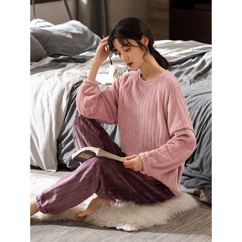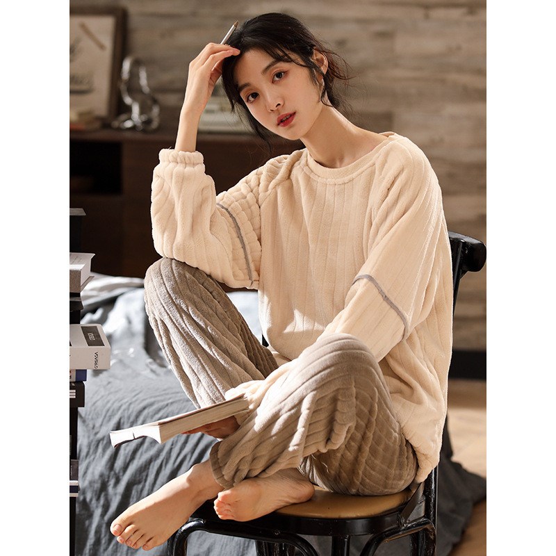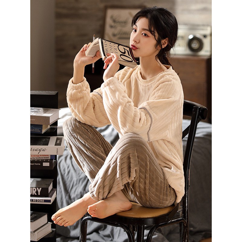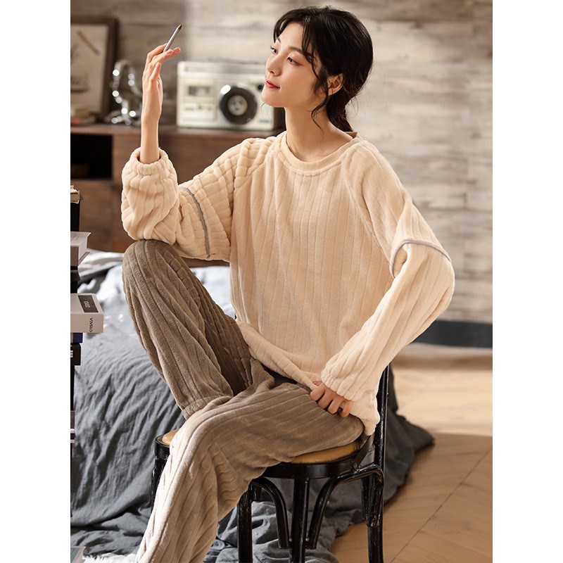 海谜璃珊瑚绒睡衣女冬季加厚加绒2021年新款法兰绒家居服可外穿春秋冬款HBF2830 草绿色套头 女M( 适合150-160CM,体重85-100)