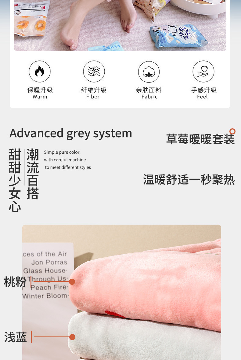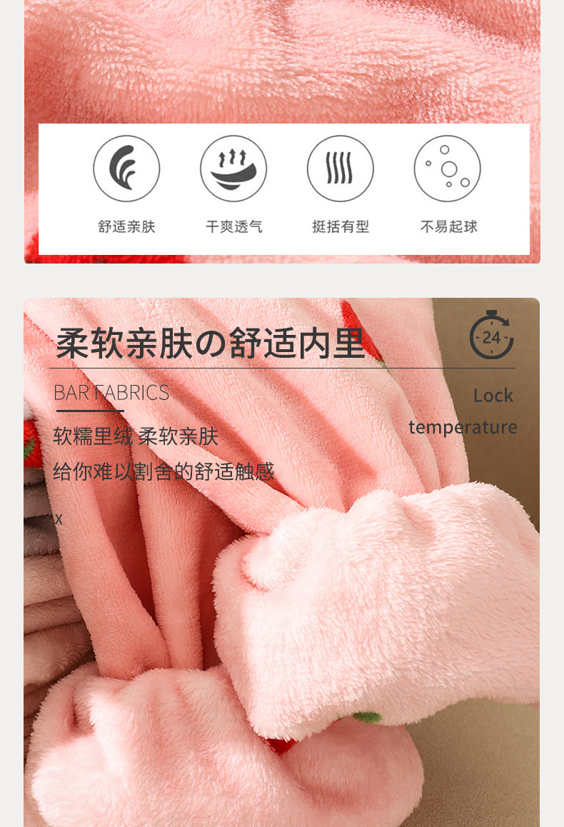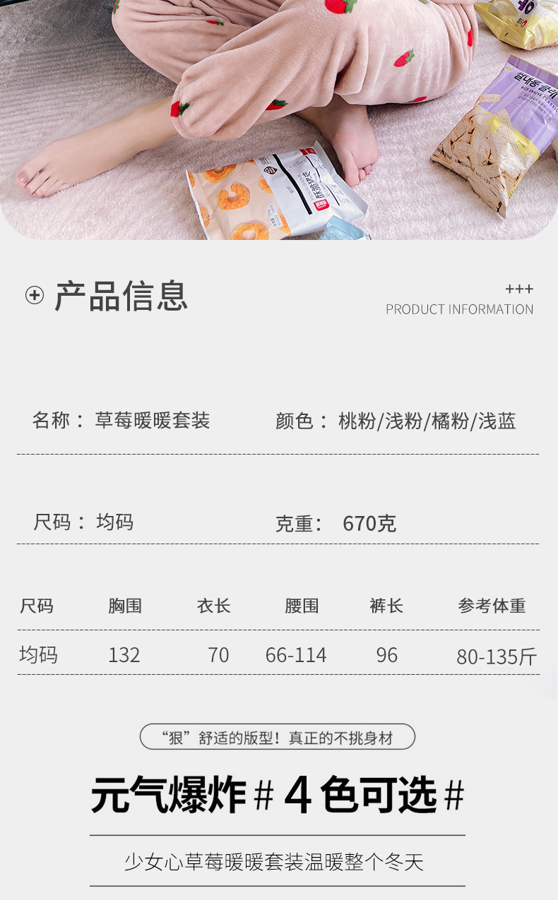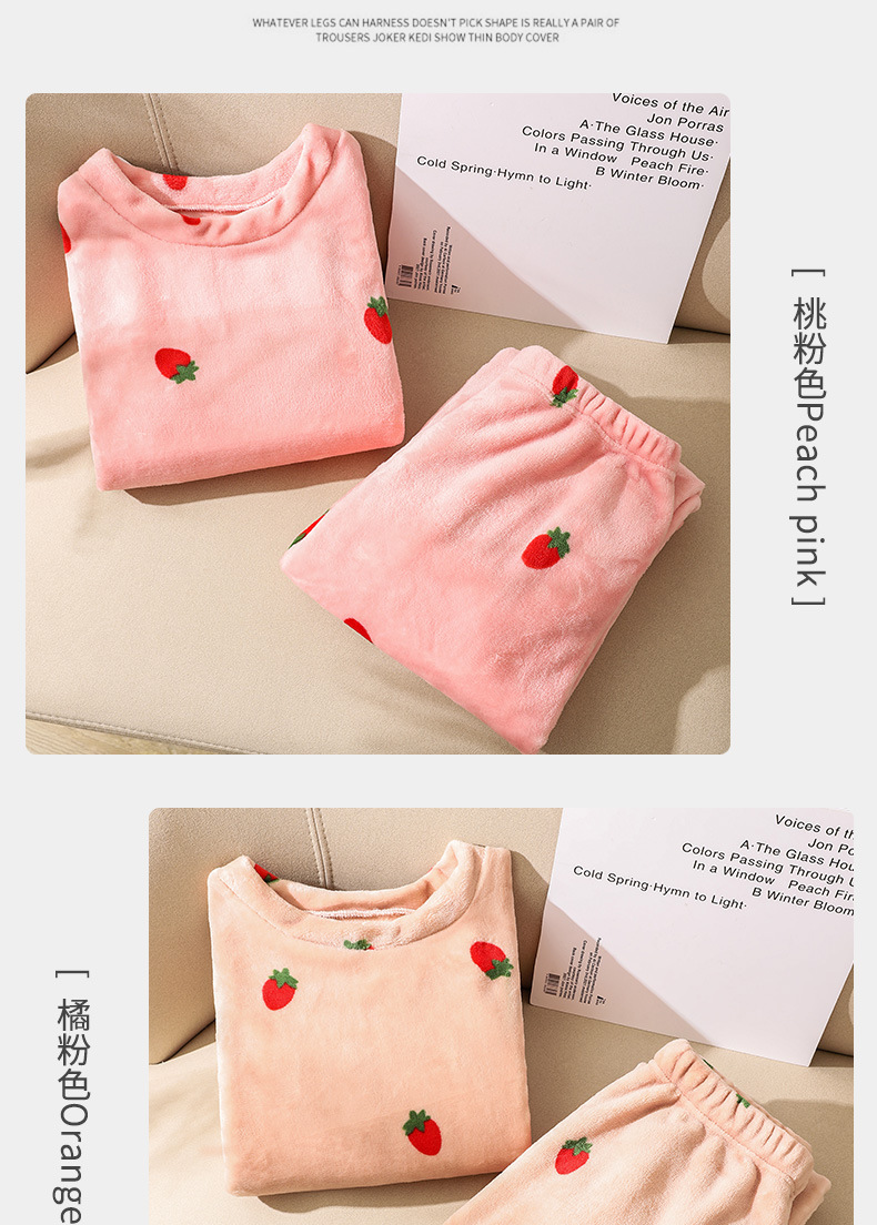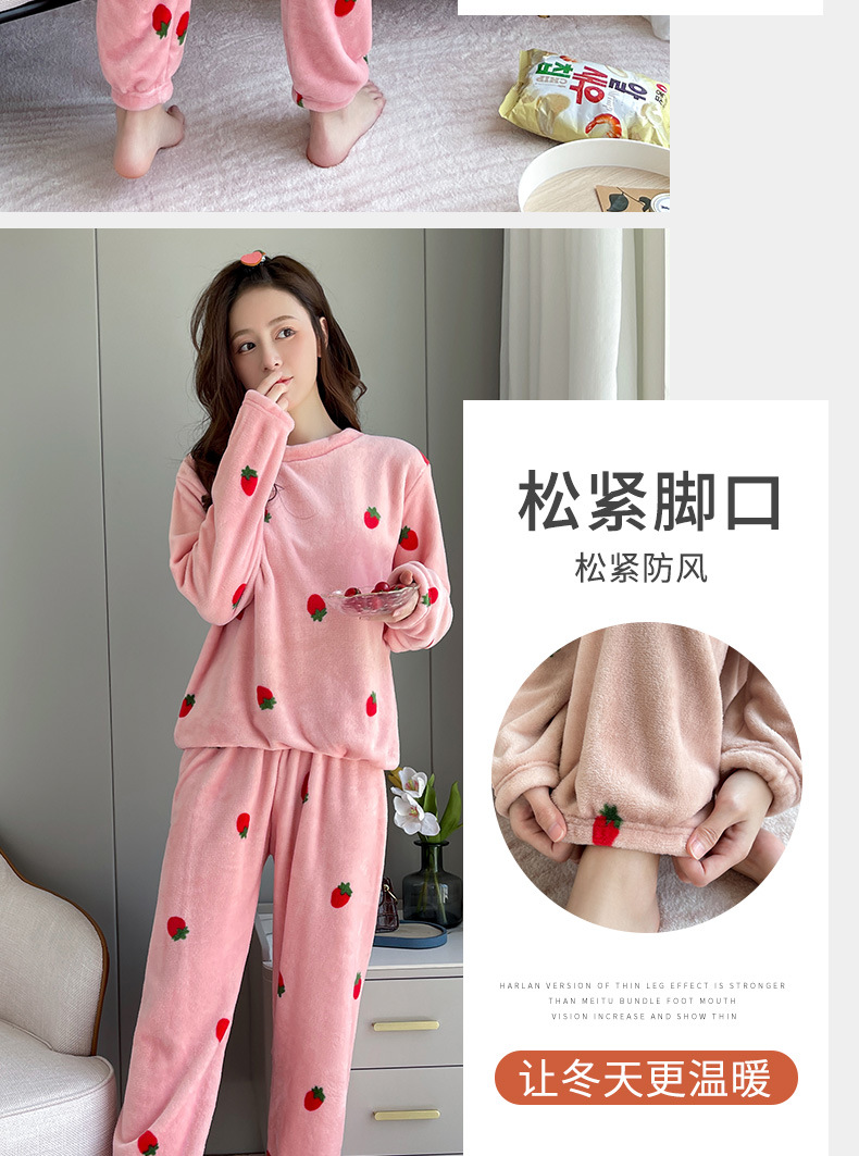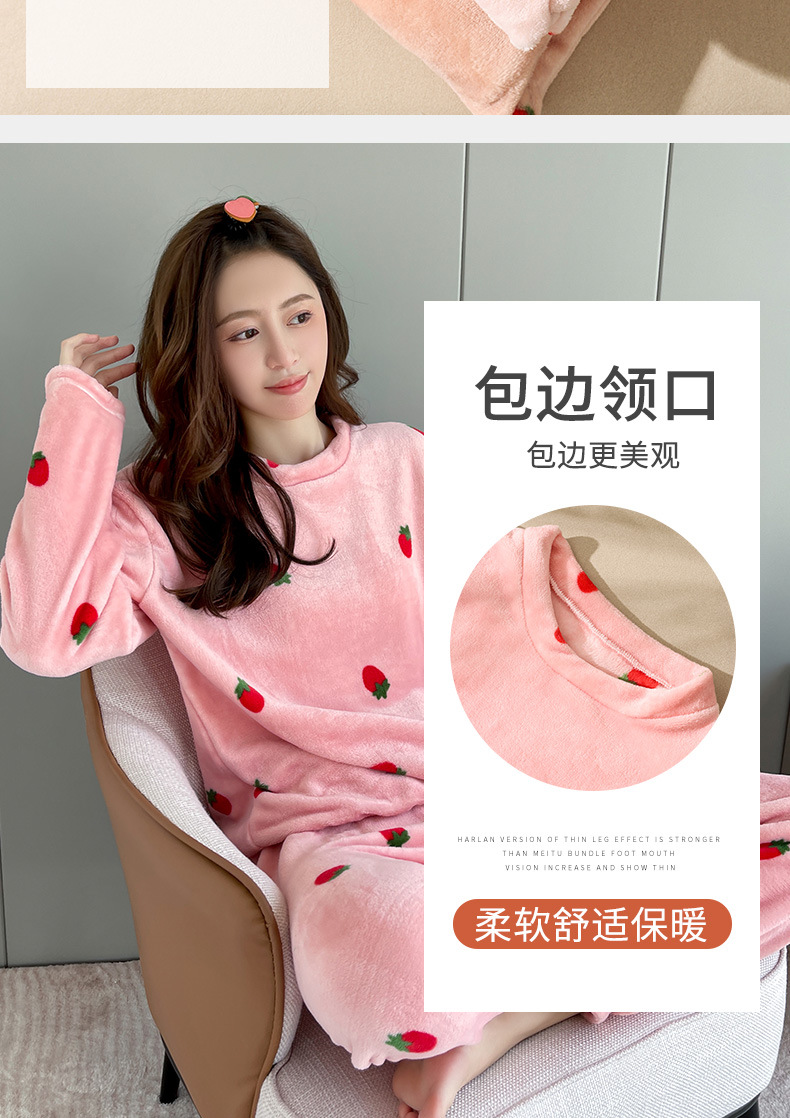 海谜璃珊瑚绒草莓暖暖套装睡衣女外穿少女秋冬保暖情侣家居服套装女HBF2827 灰色 均码