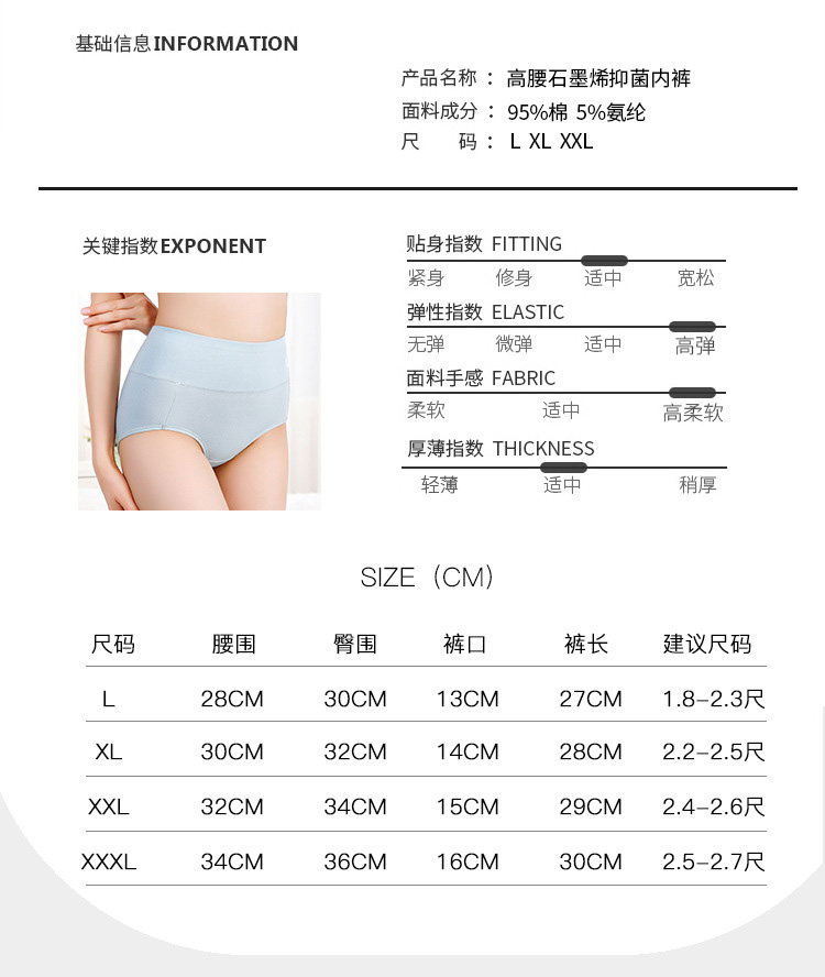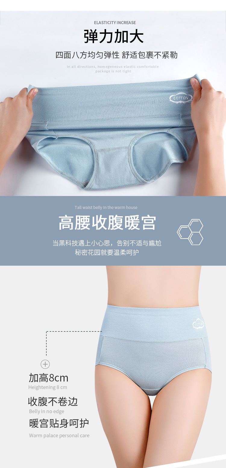 海谜璃【4条装】石墨稀抗菌内裤 纯棉高腰内裤女士 纯棉三角裤 收腹高腰内裤HBF2765 浅粉 XXL