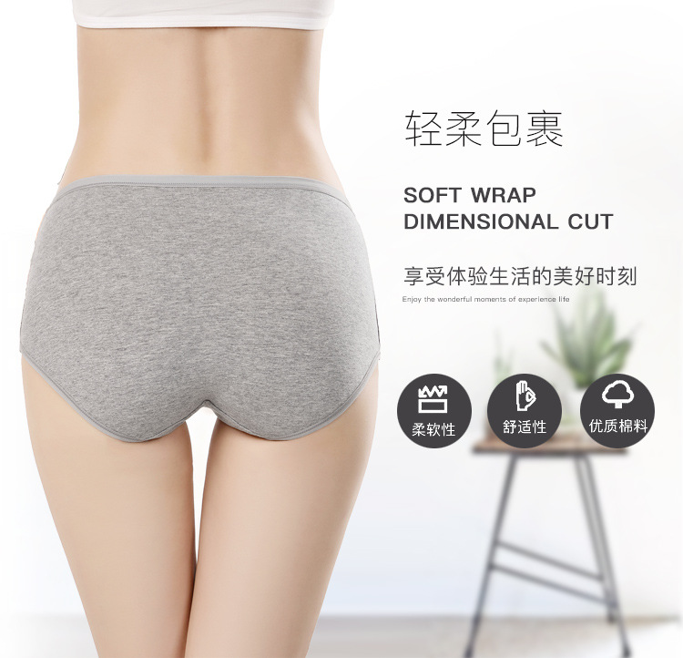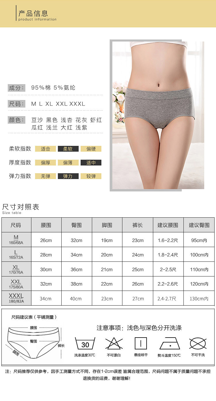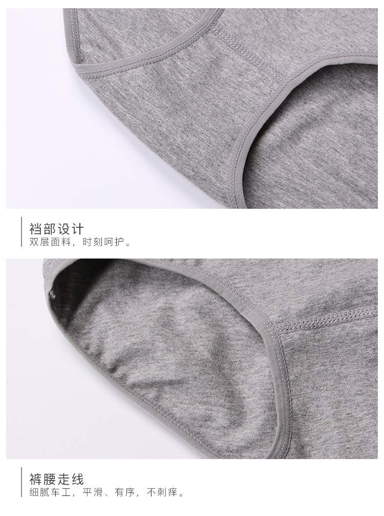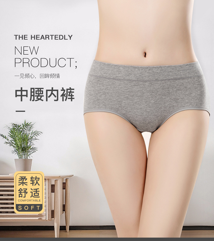 海谜璃【5条盒装】中腰女士纯棉内裤 中腰纯棉纯色女士内裤HBF2764 灰色+杏色+浅紫+浅蓝+瓜红 M