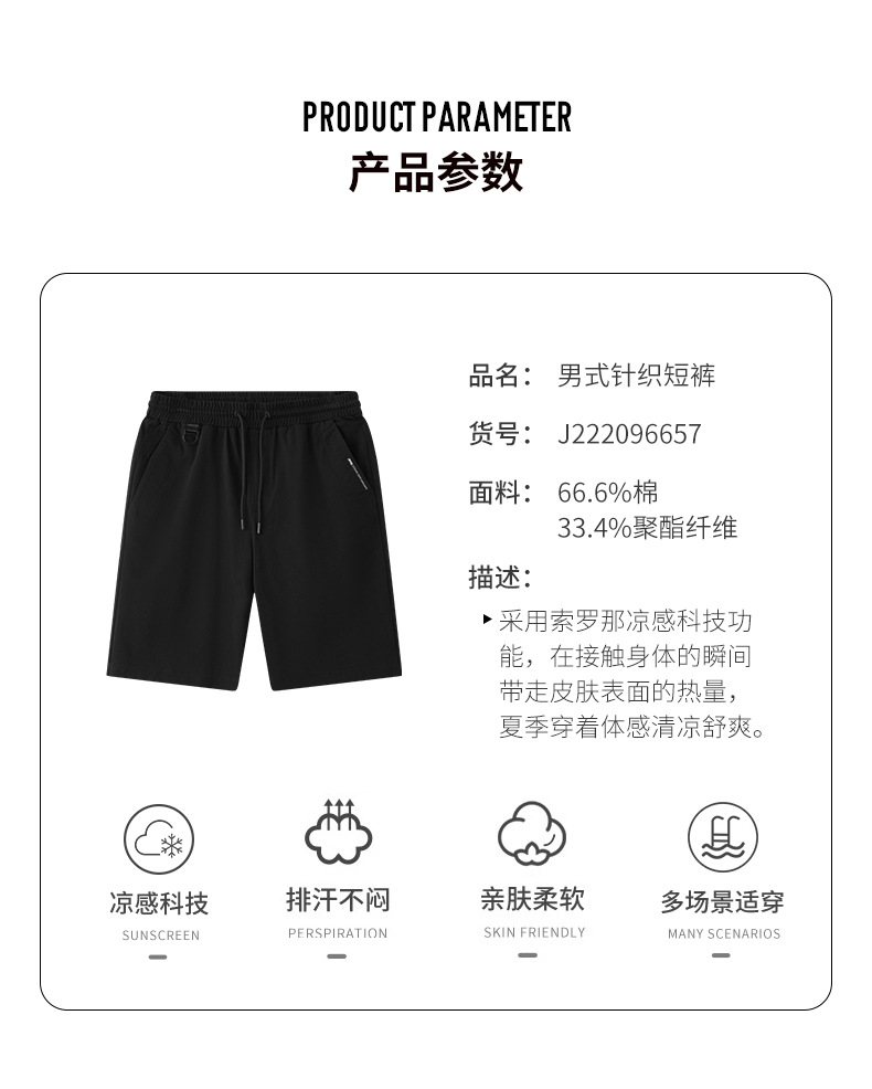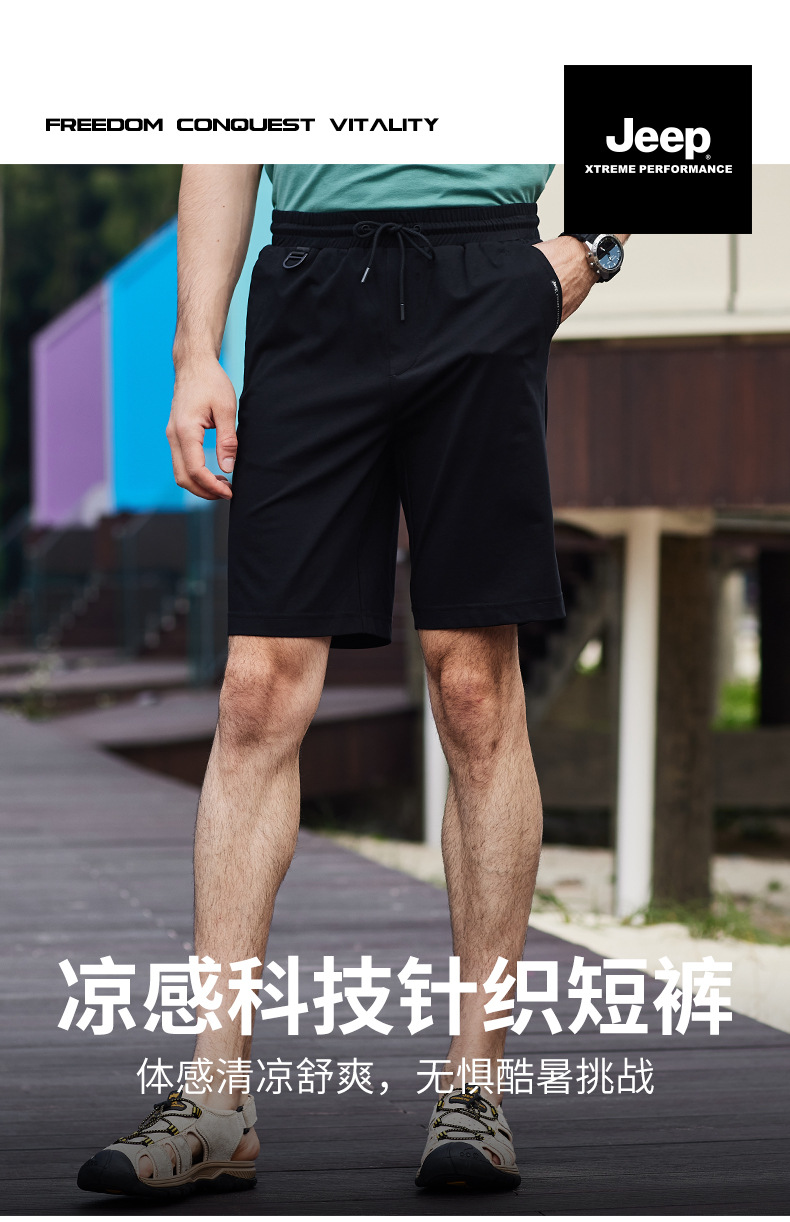 JEEP 新款运动短裤男士户外针织短裤春夏透气舒适健身跑步锻炼裤男J222096657