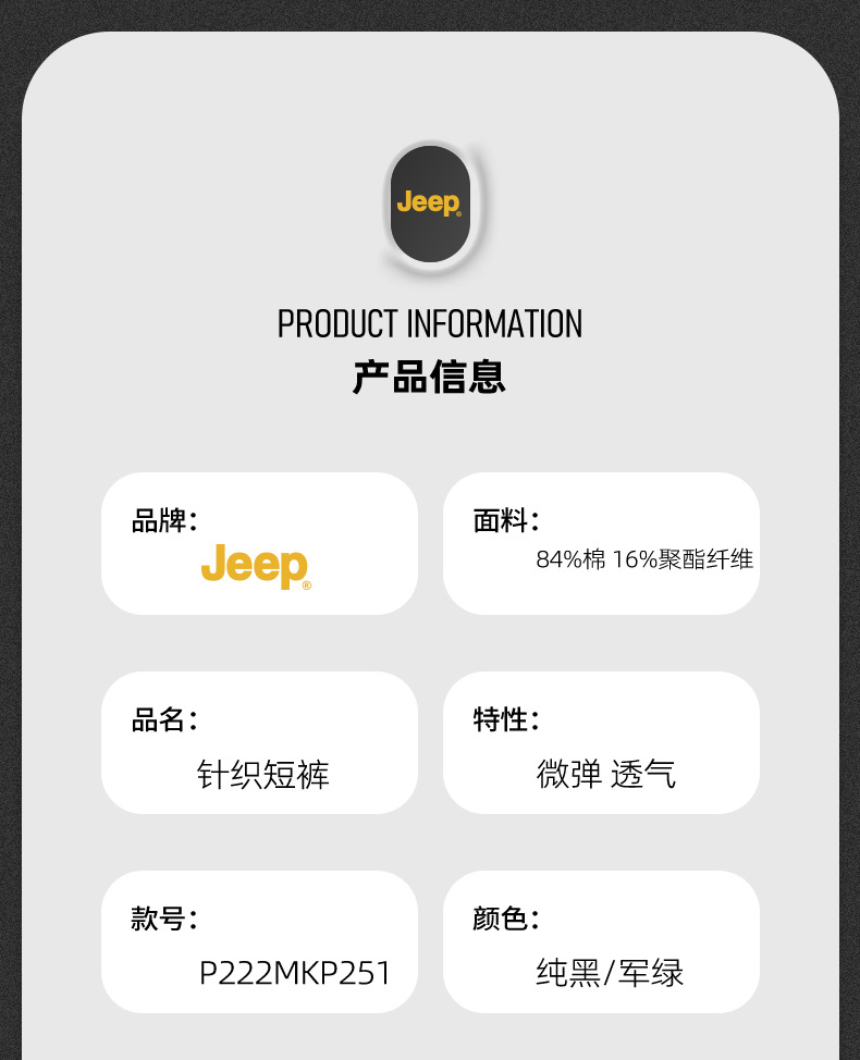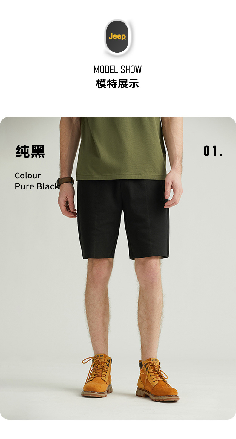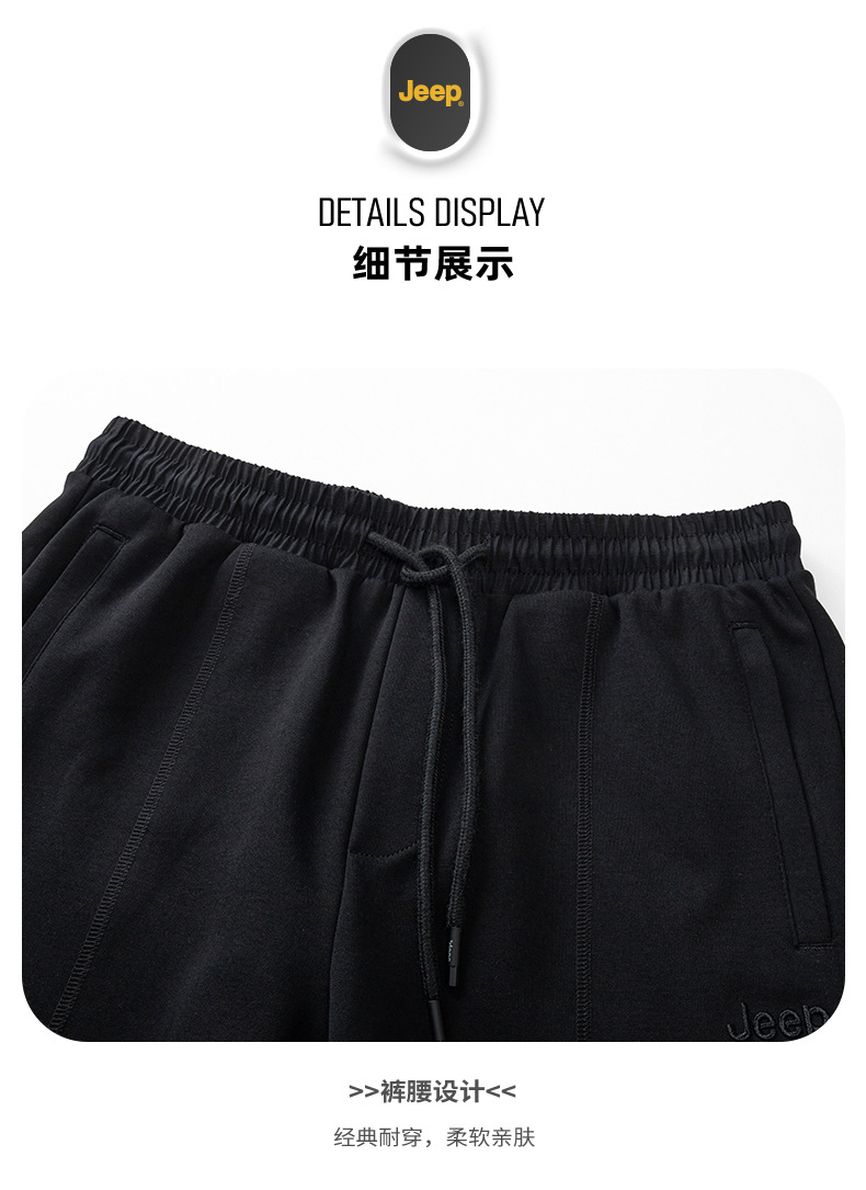 JEEP 新款休闲短裤男百搭工装四分短裤时尚潮流青中年松紧带休闲裤P222MKP251