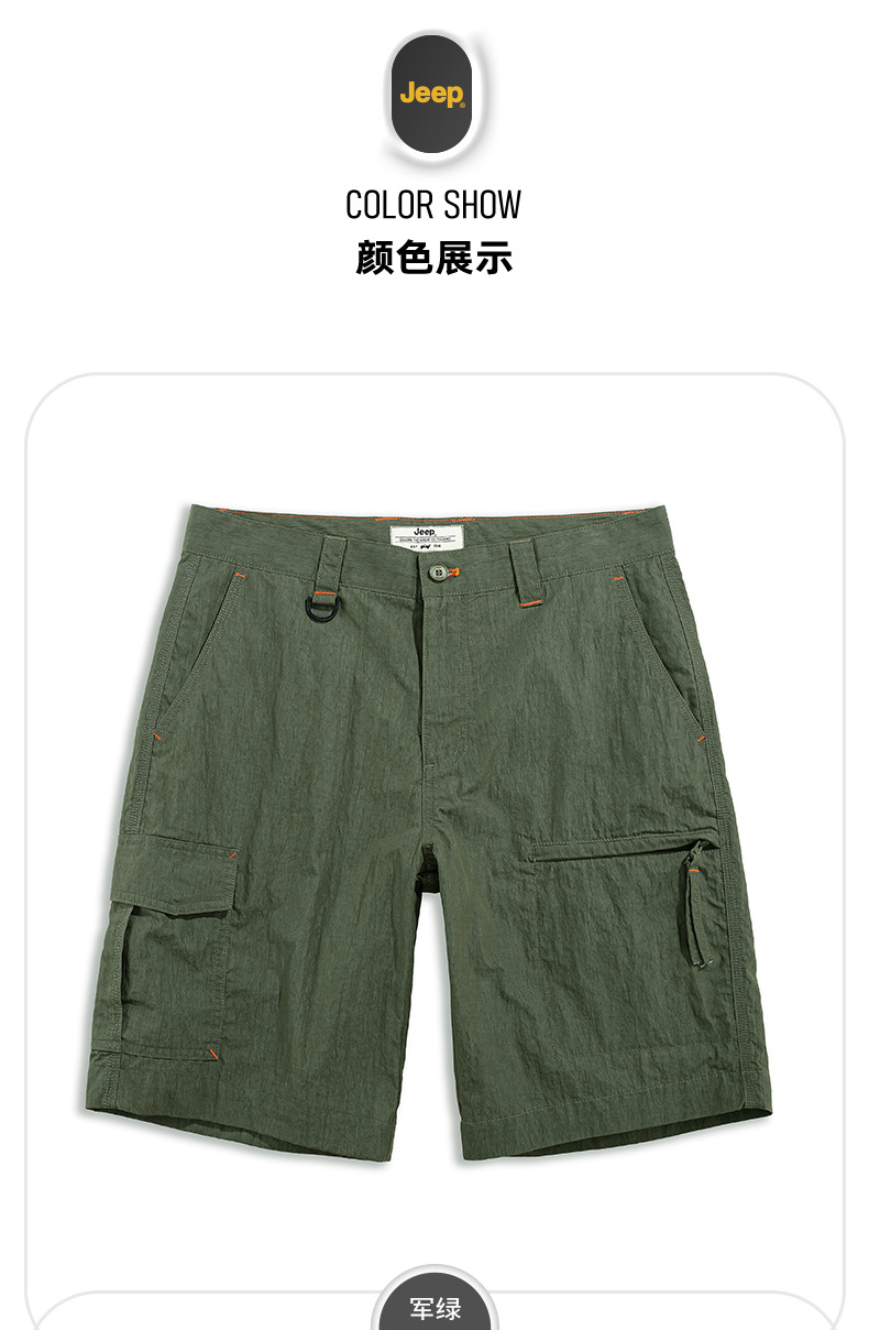 JEEP 新款夏天休闲短裤微弹工装裤潮中裤男士柔软透气四分露膝男裤P222MWP249