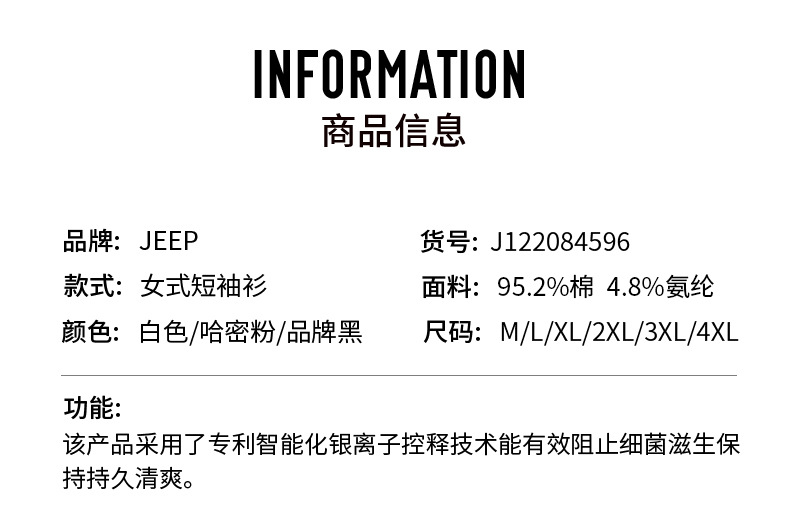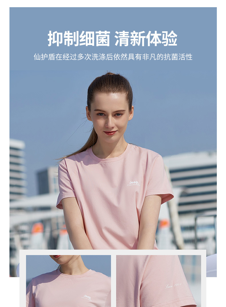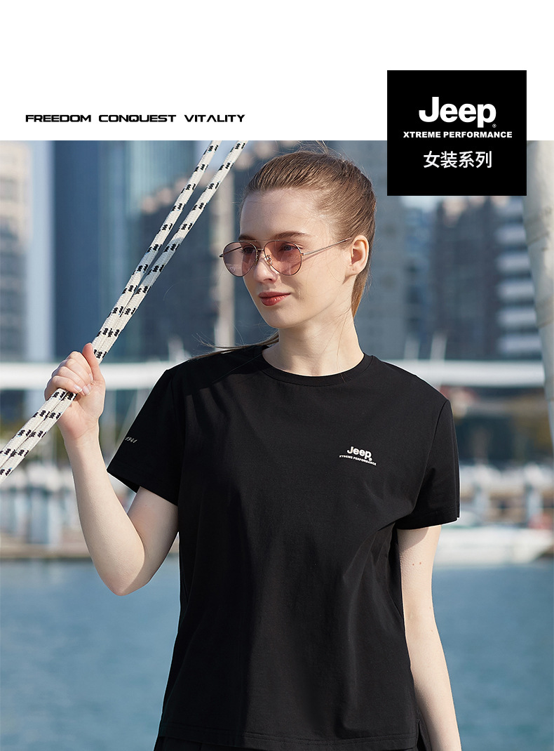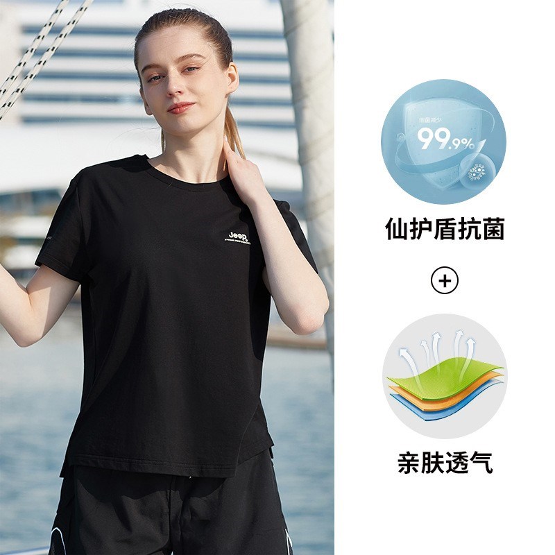 JEEP 新款吸湿速干运动T恤女装春夏健身跑步锻炼简约短袖上衣J122084596