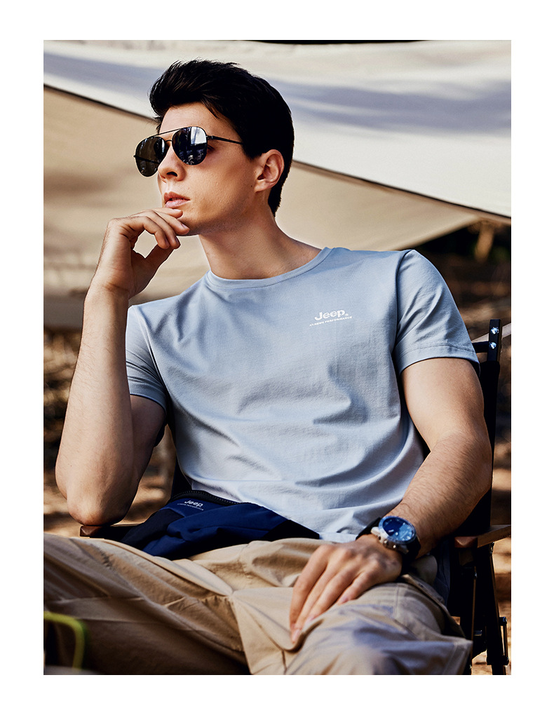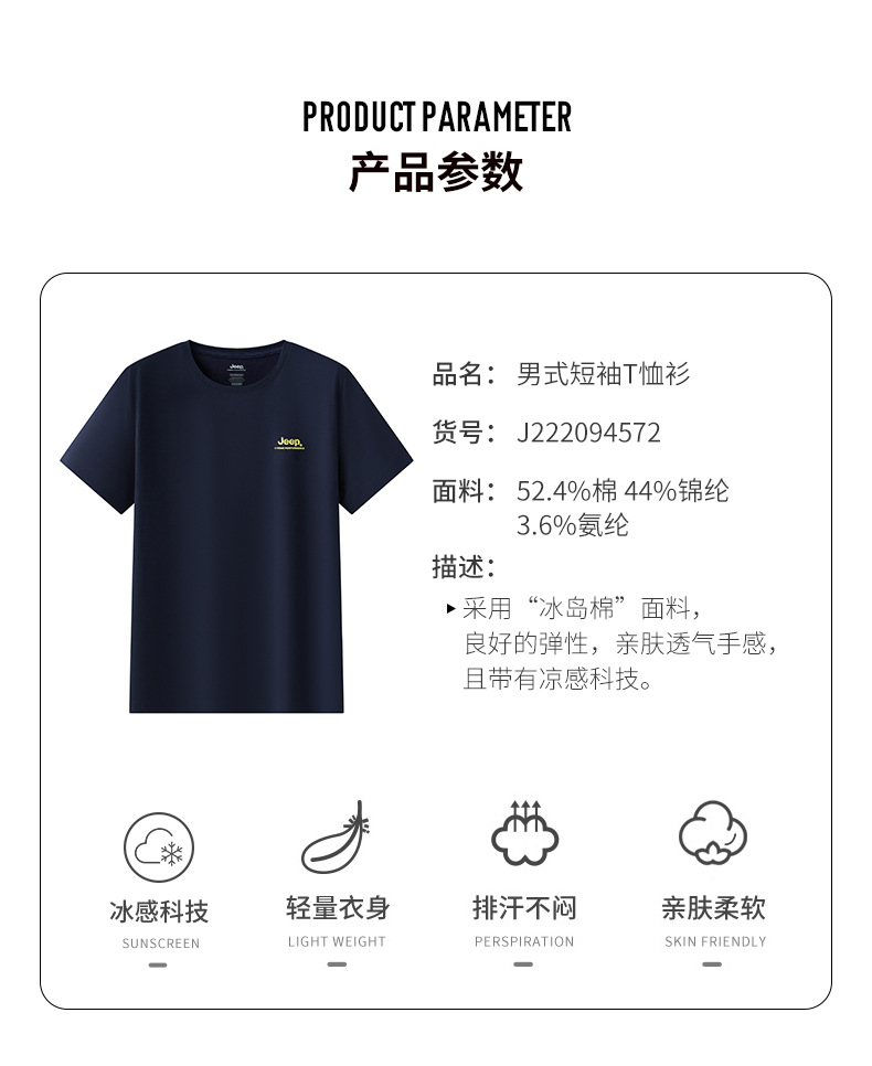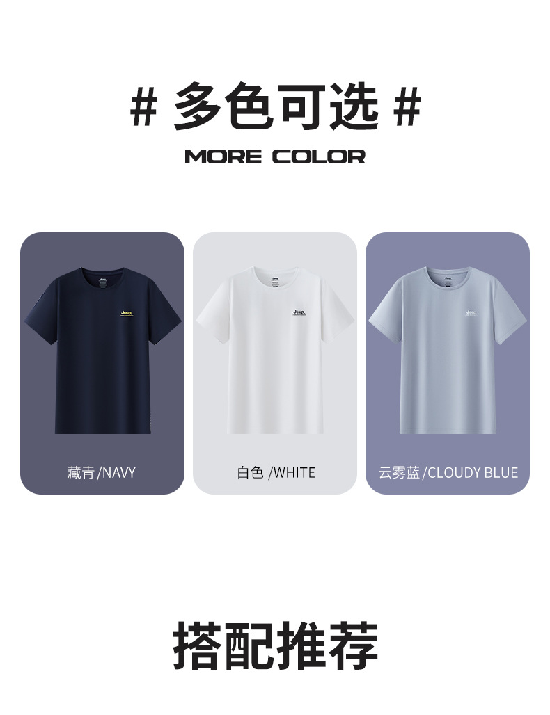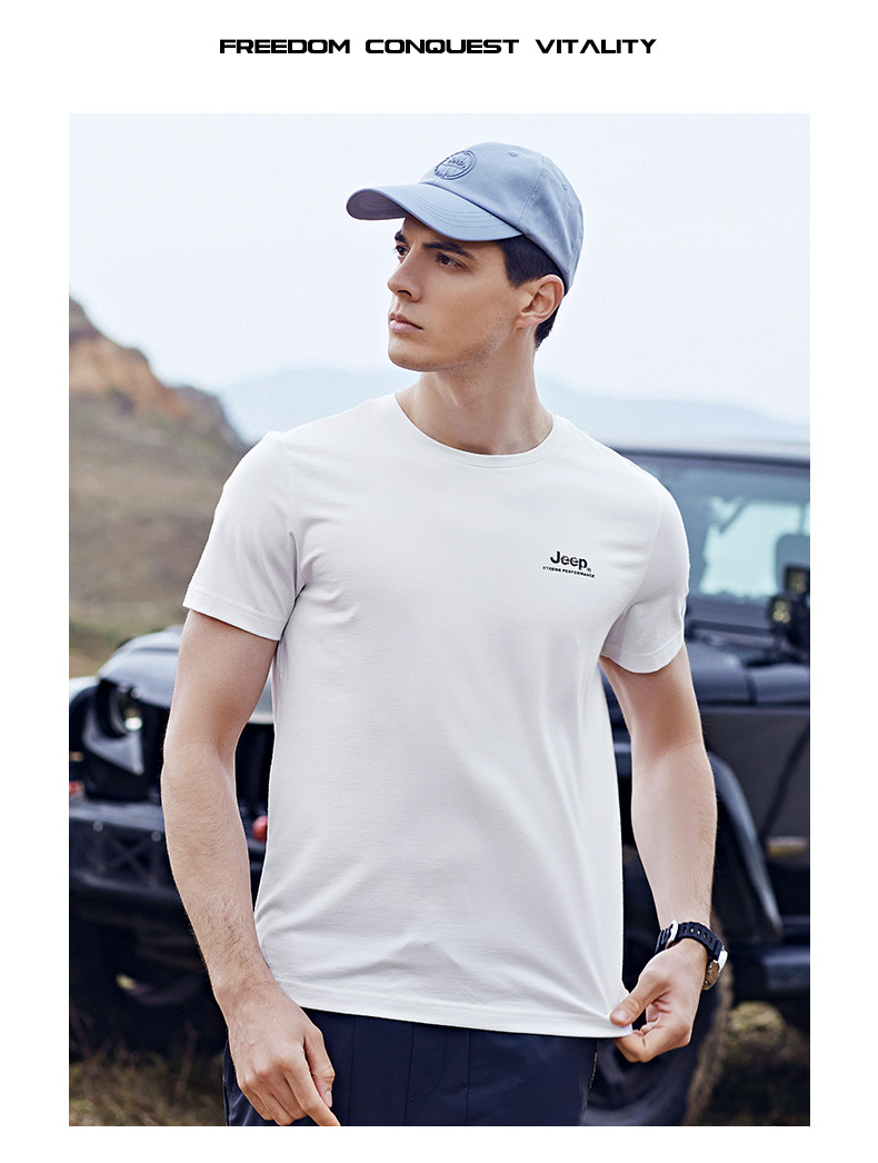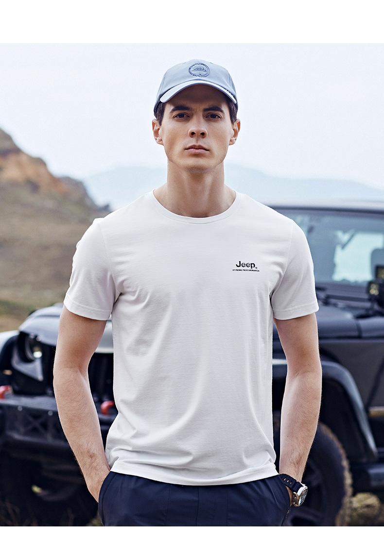 JEEP 短袖t恤男士新款春夏季休闲经典百搭圆领纯色简约舒适上衣J222094572