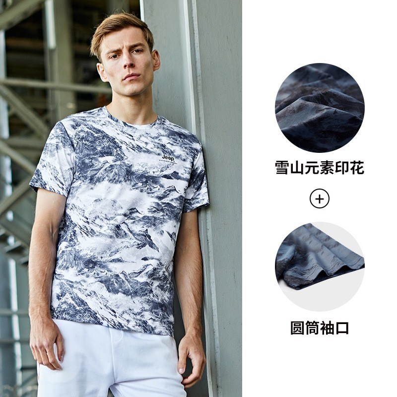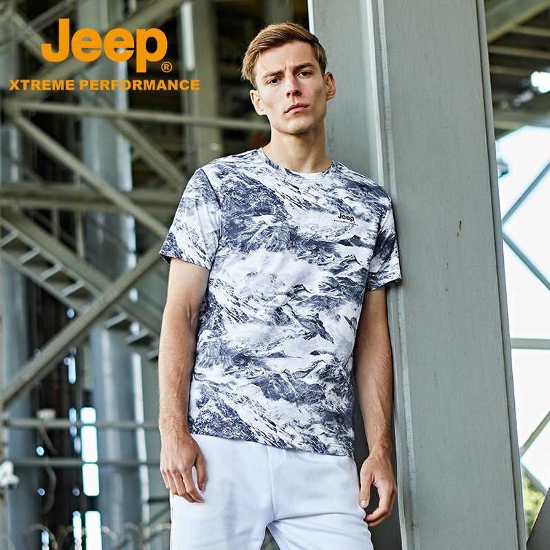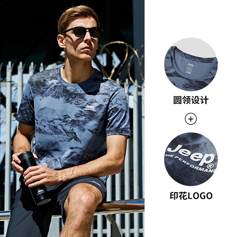 JEEP 短袖男春夏季时尚男装休闲印花棉t恤大码运动上衣男潮J122094562