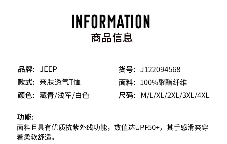 JEEP 短袖男T恤春夏季新款休闲透气舒适半袖棉质简约男士运动体恤J122094568
