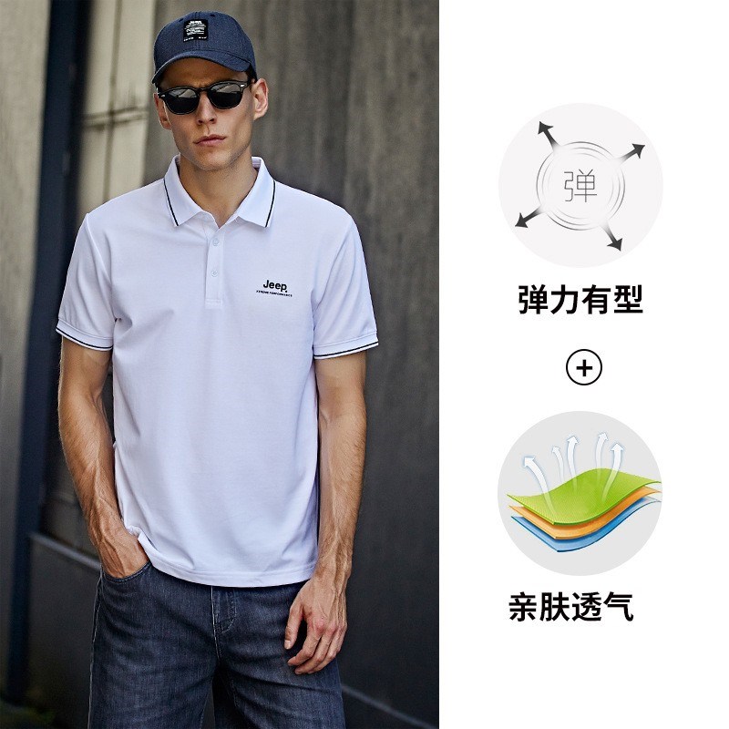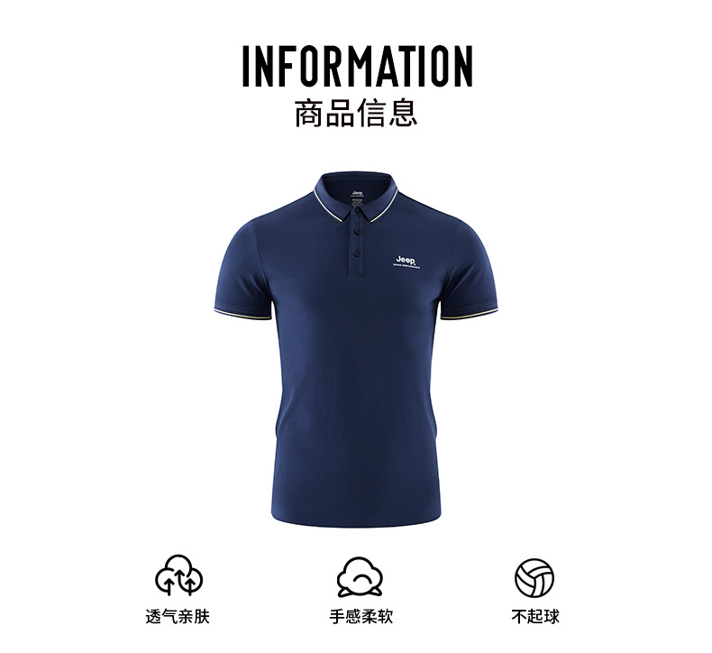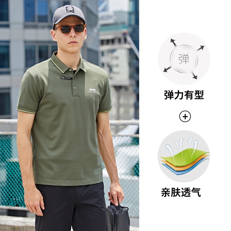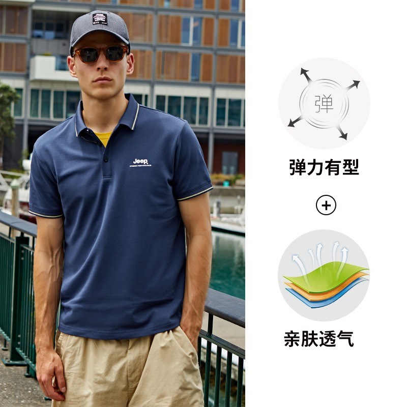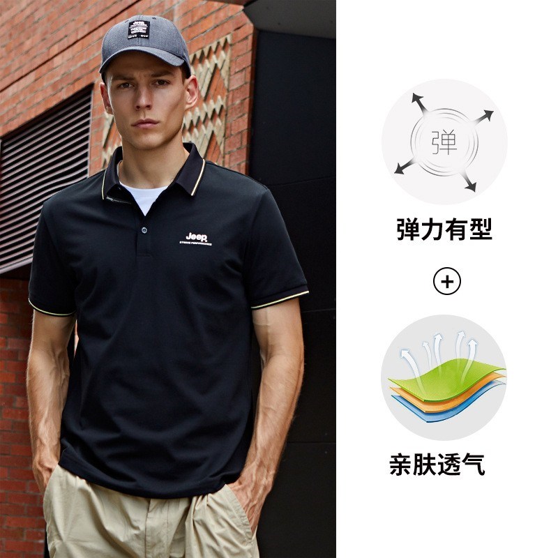 JEEP 新款POLO衫男士运动短袖新款时尚上衣休闲翻领T恤修身半袖J122094576