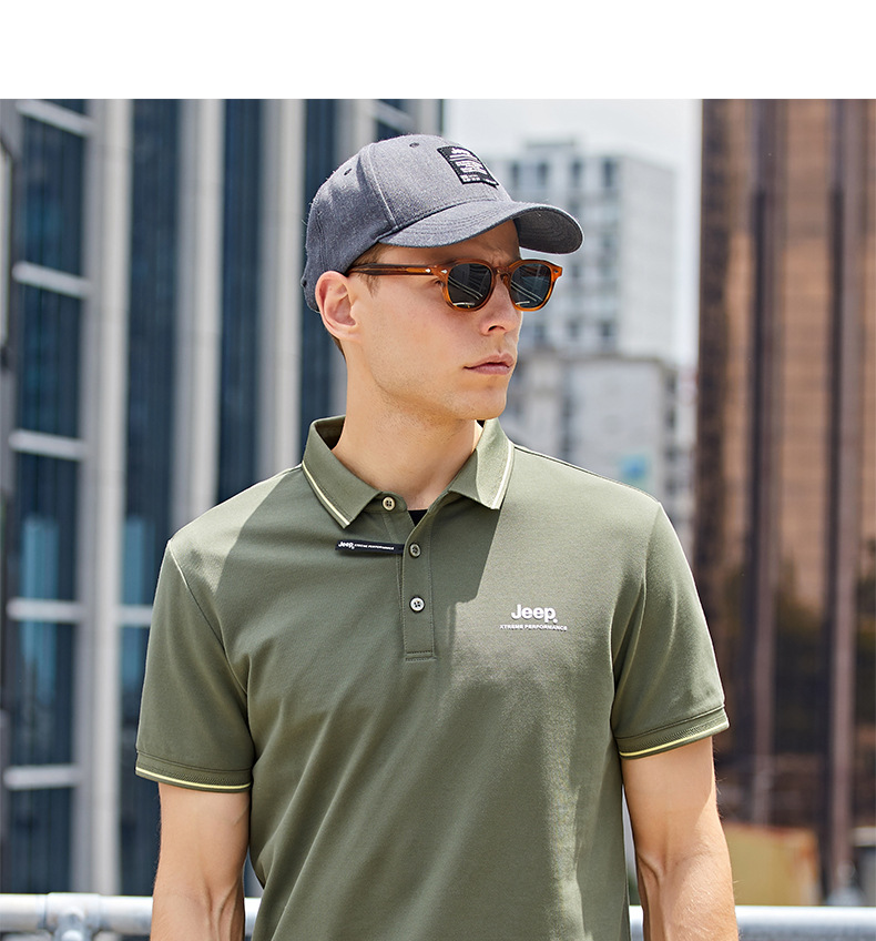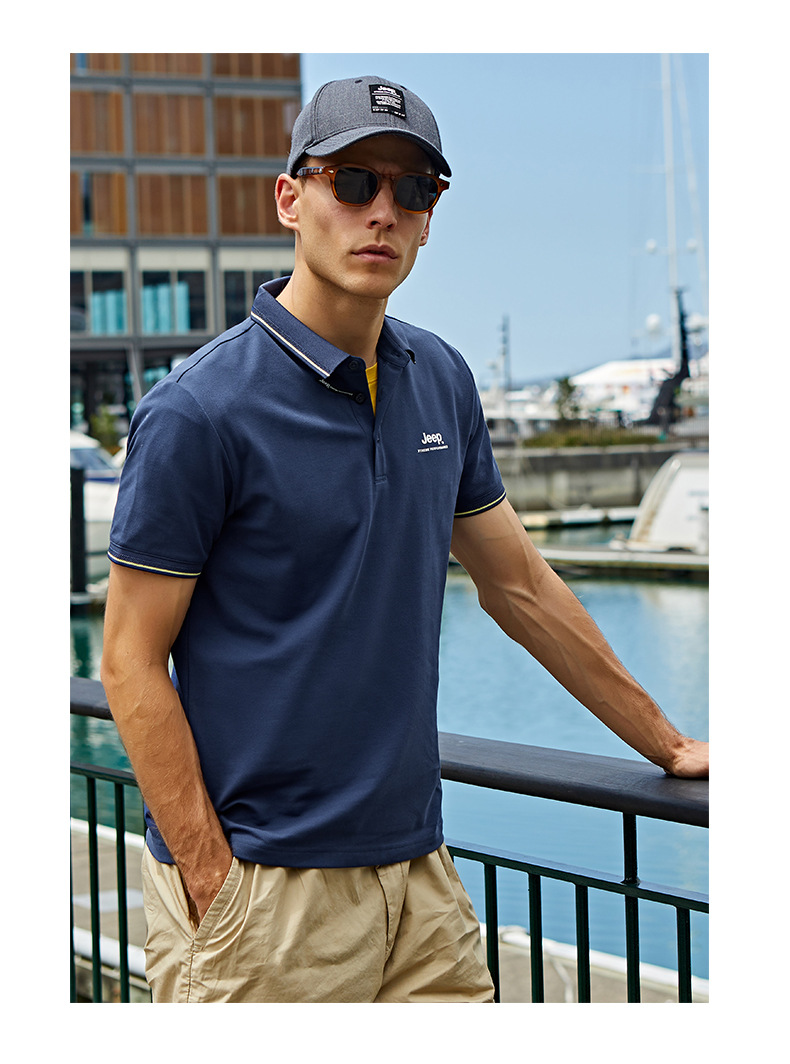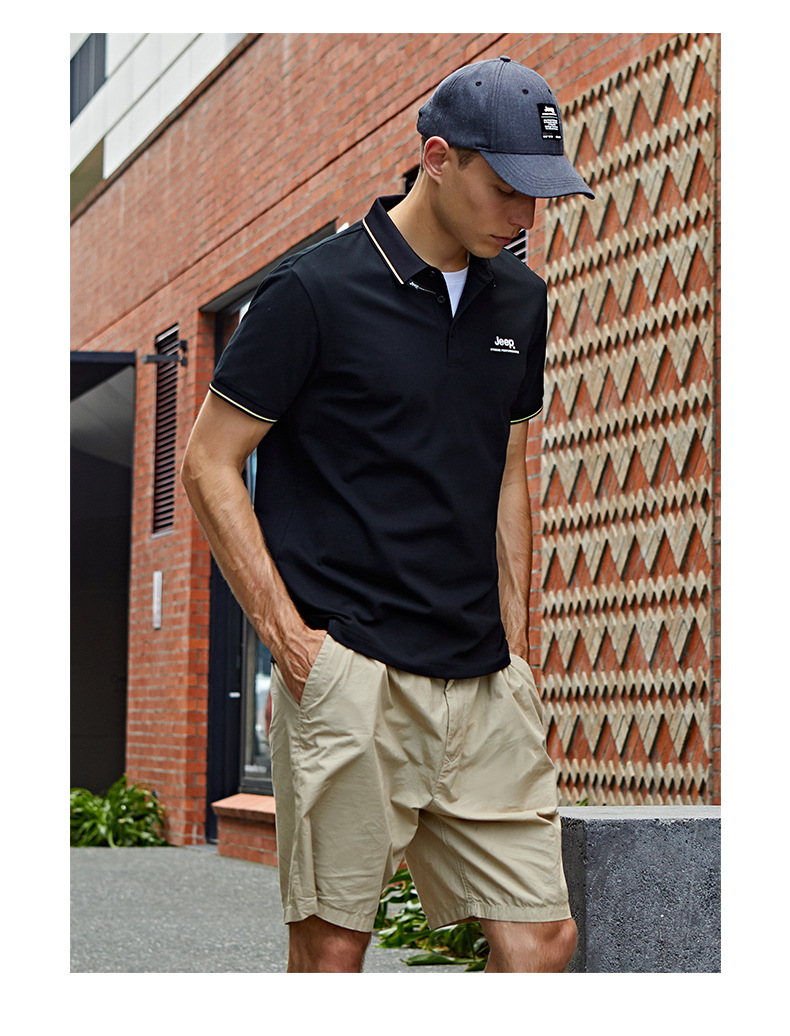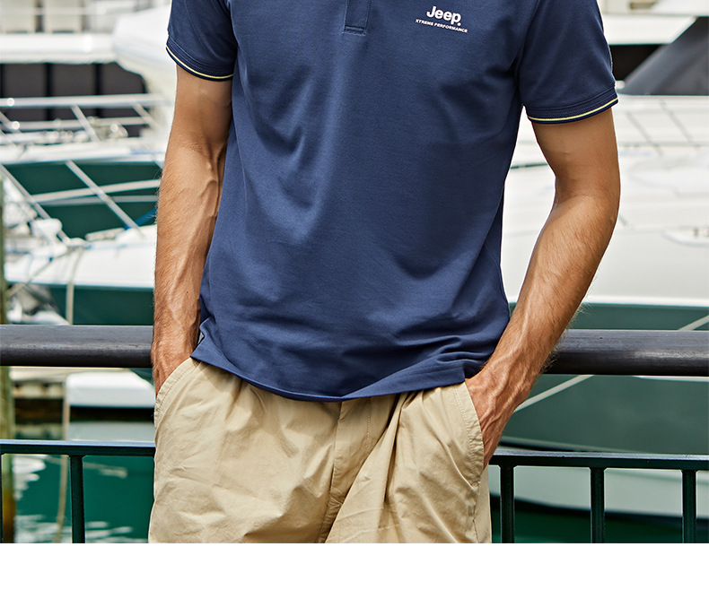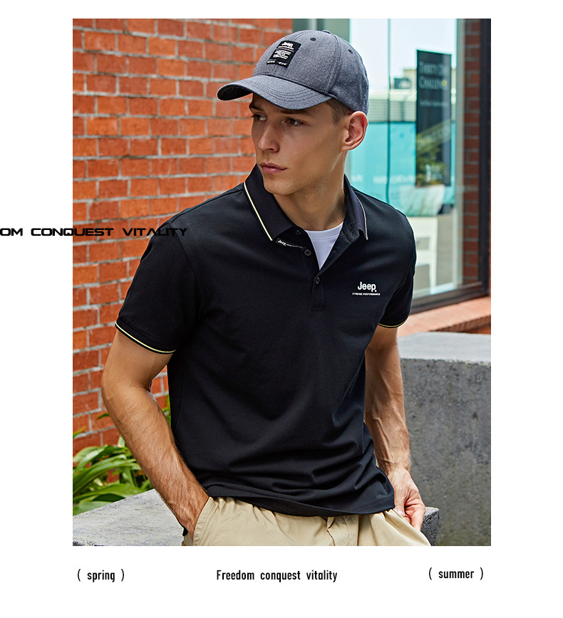 JEEP 新款POLO衫男士运动短袖新款时尚上衣休闲翻领T恤修身半袖J122094576