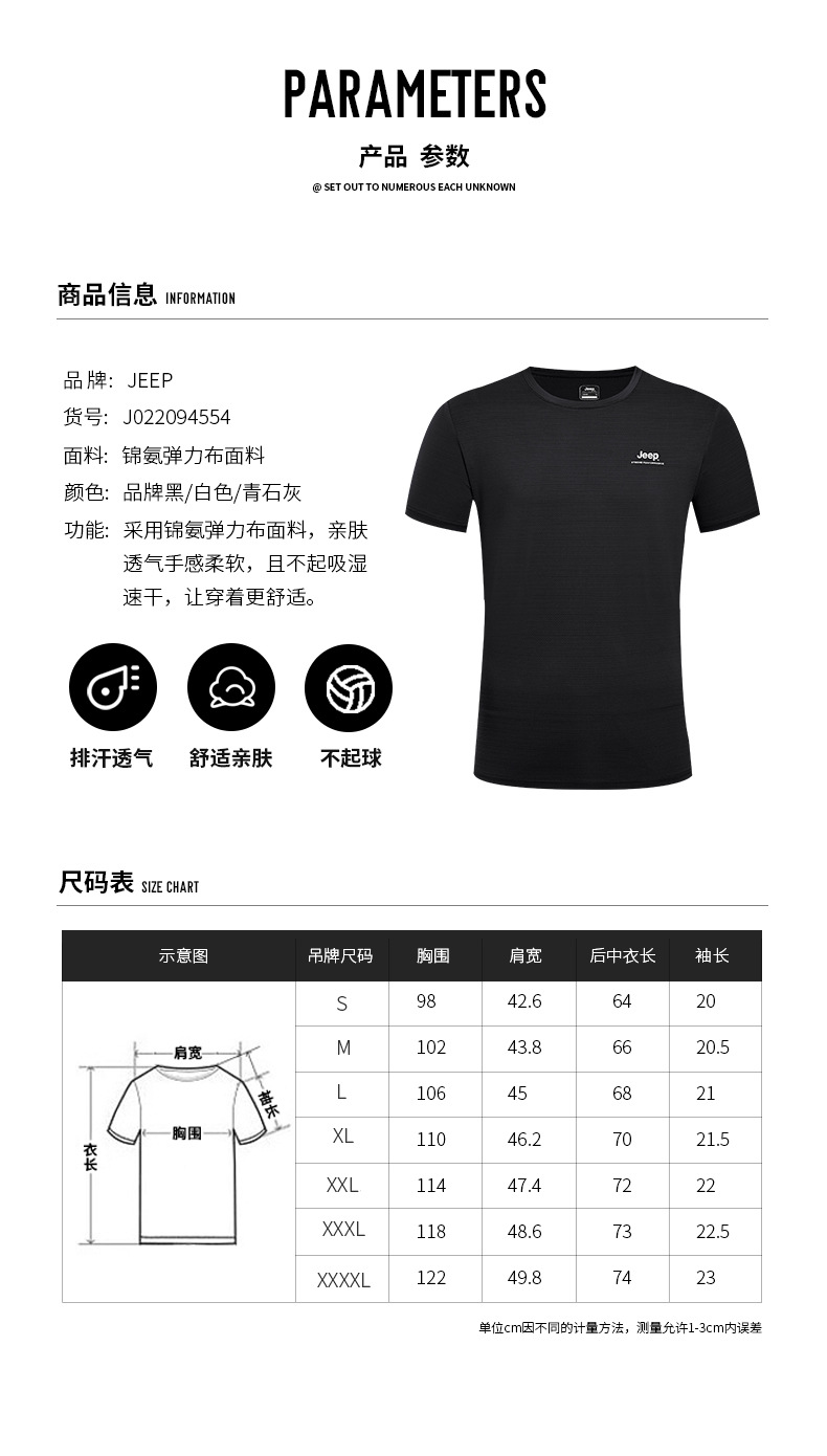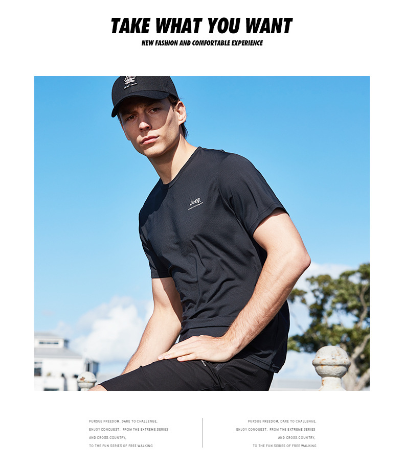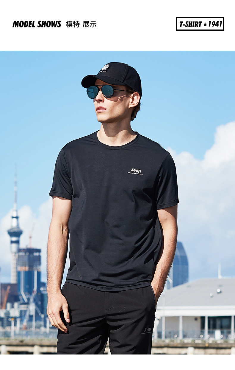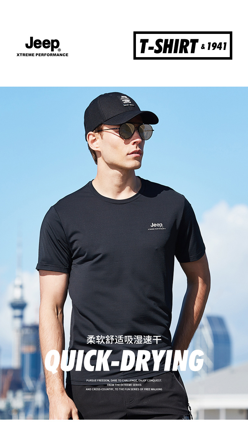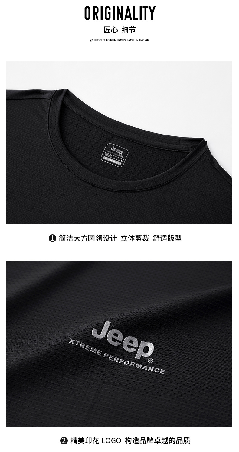 JEEP 新款夏季新款T恤男透气短袖内搭百搭男士户外运动速干衣男装 J022094554