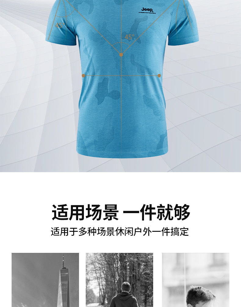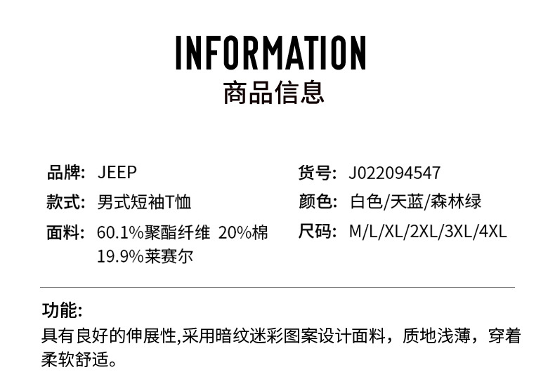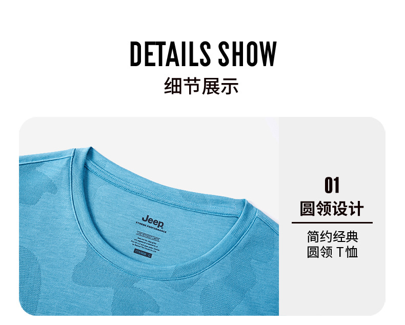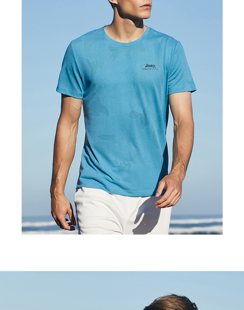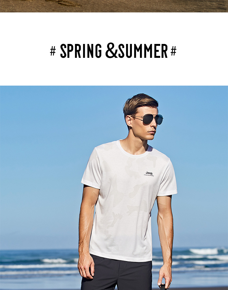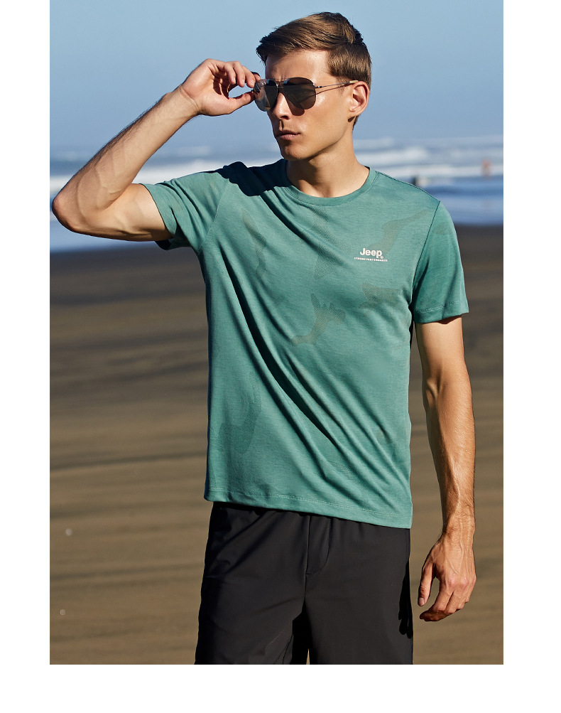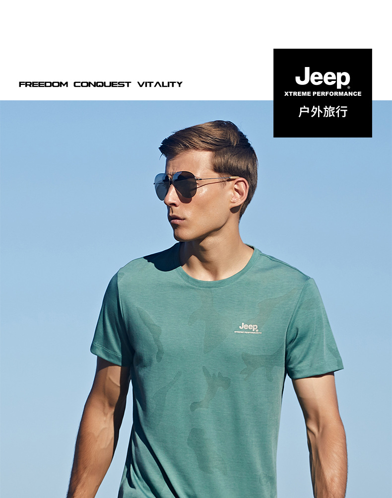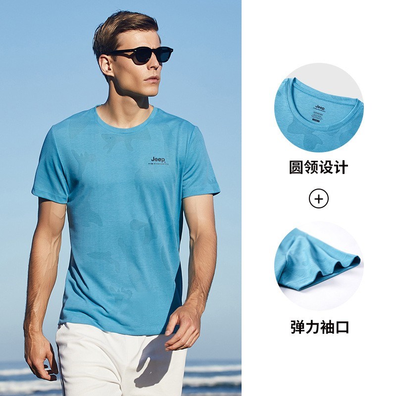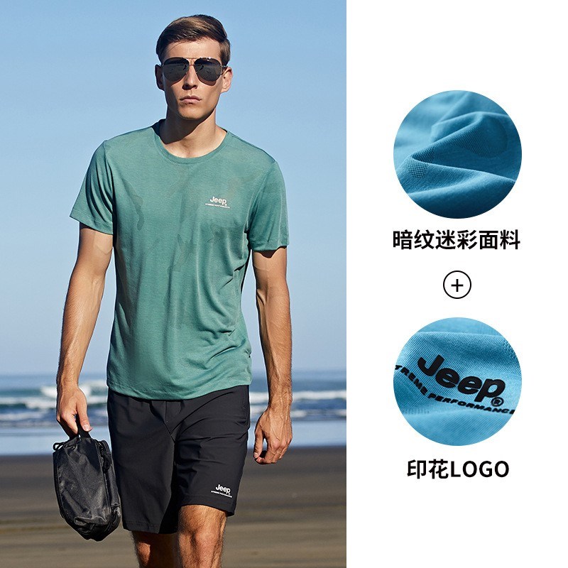 JEEP 时尚简约运动t恤男士春夏新款印花休闲上衣圆领透气运动短袖J122094547