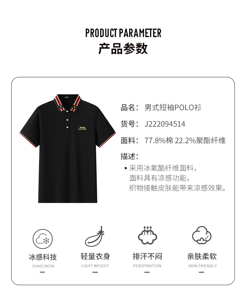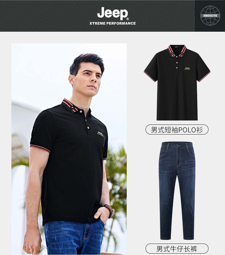 JEEP 短袖男士春夏季POLO衫百搭T恤修身休闲上衣男透气舒适潮流轻熟男J222094514