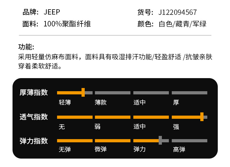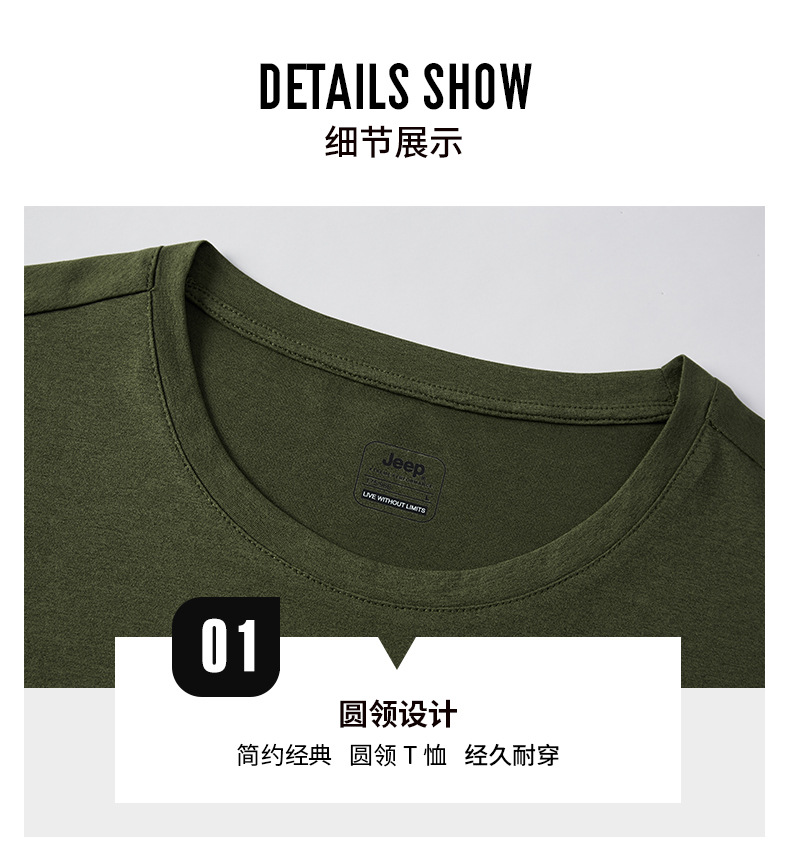JEEP 简约短袖T恤男士春夏季薄款宽松新款休闲运动体恤衫圆领上衣 J122094567