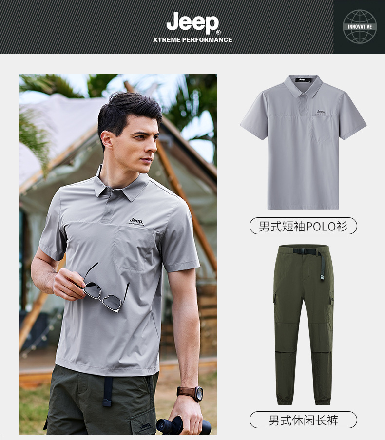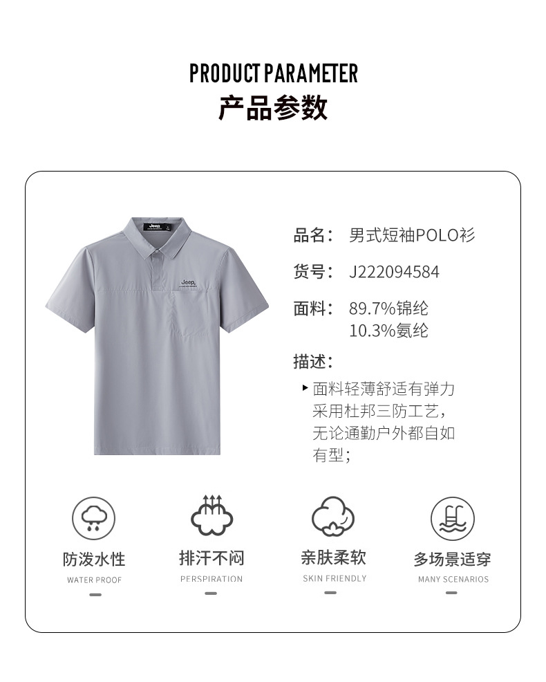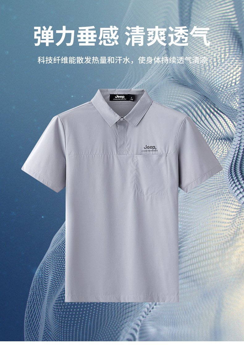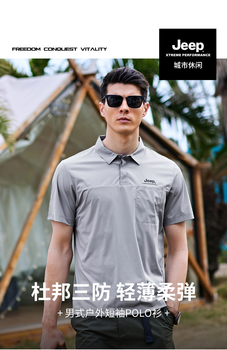 JEEP 短袖t恤男POLO衫商务成熟新款春夏季休闲百搭圆领简约上衣J222094584