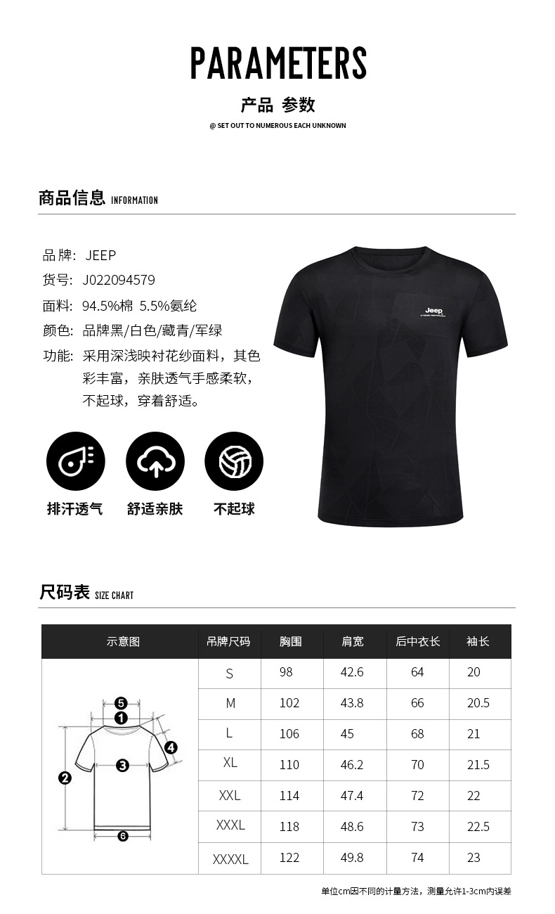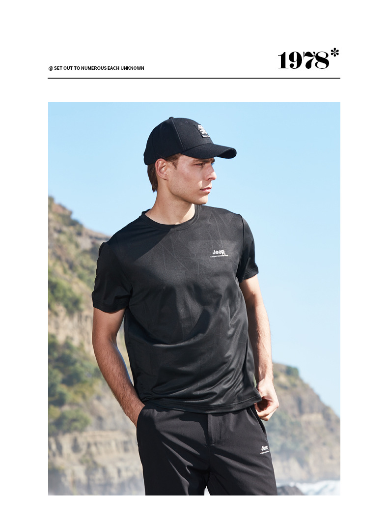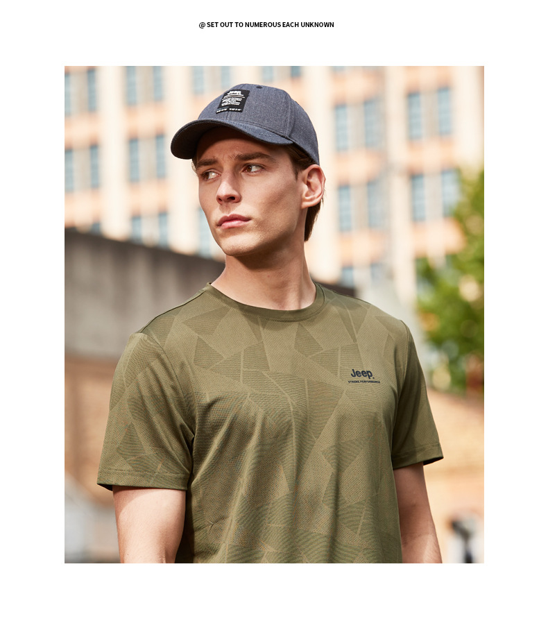 JEEP 男士春季夏季简约时尚内搭T恤舒适上衣男透气半袖户外运动短袖男 J022094579