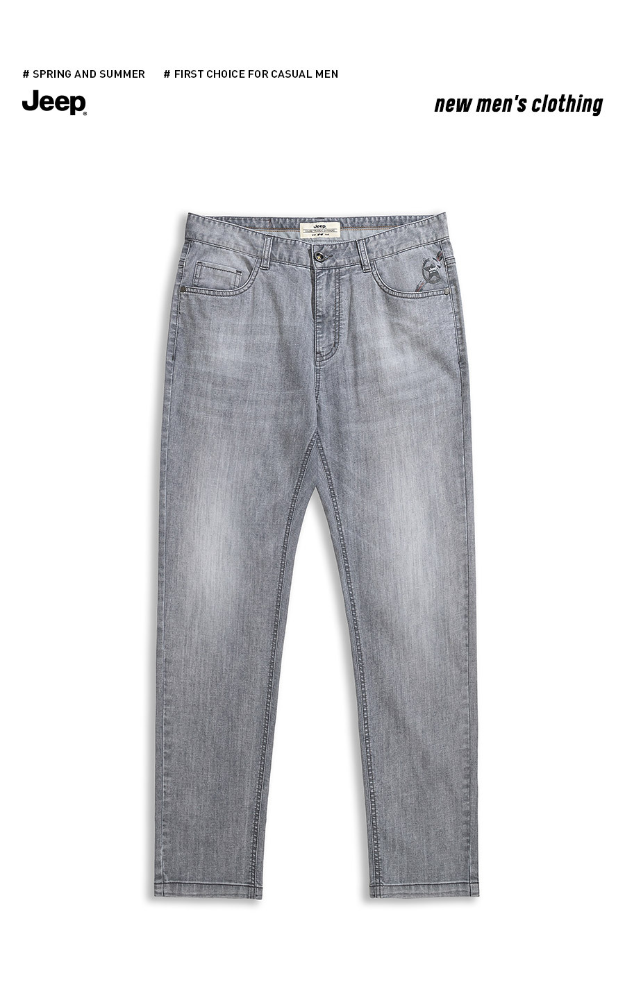JEEP 春秋新款弹牛仔休闲棉长裤中腰青年蓝色牛仔裤 P221MWN068