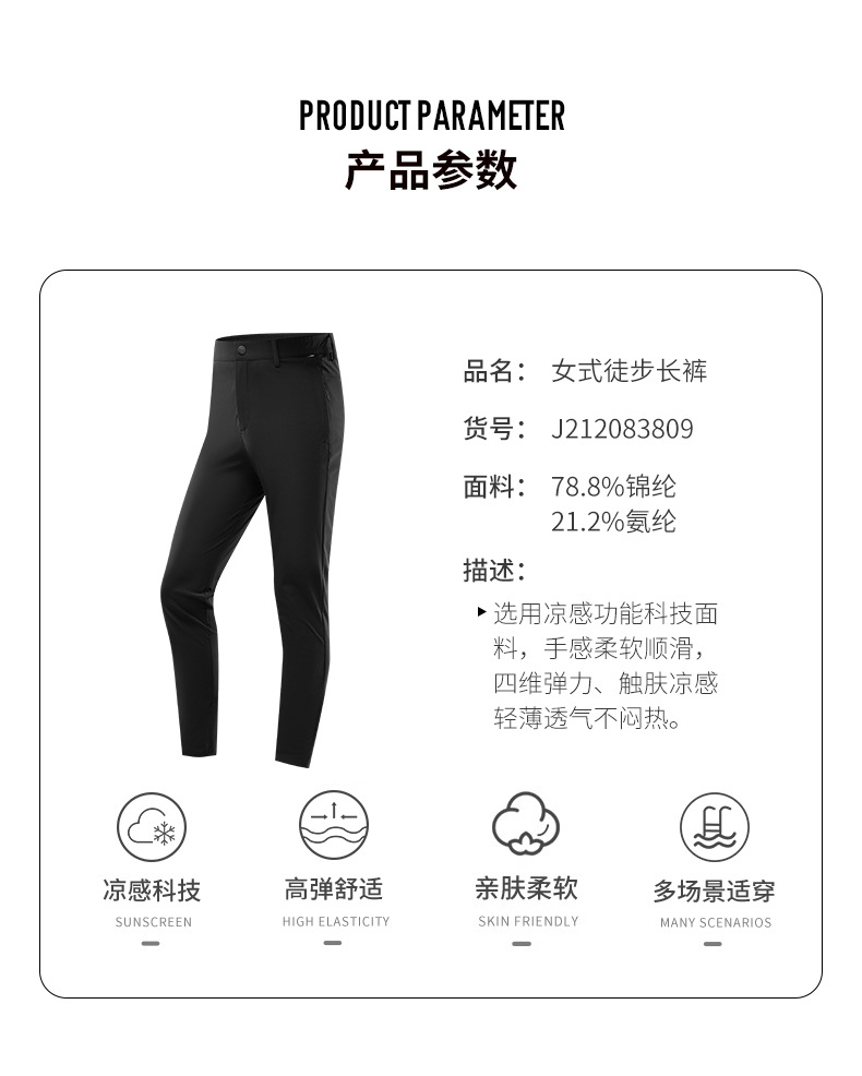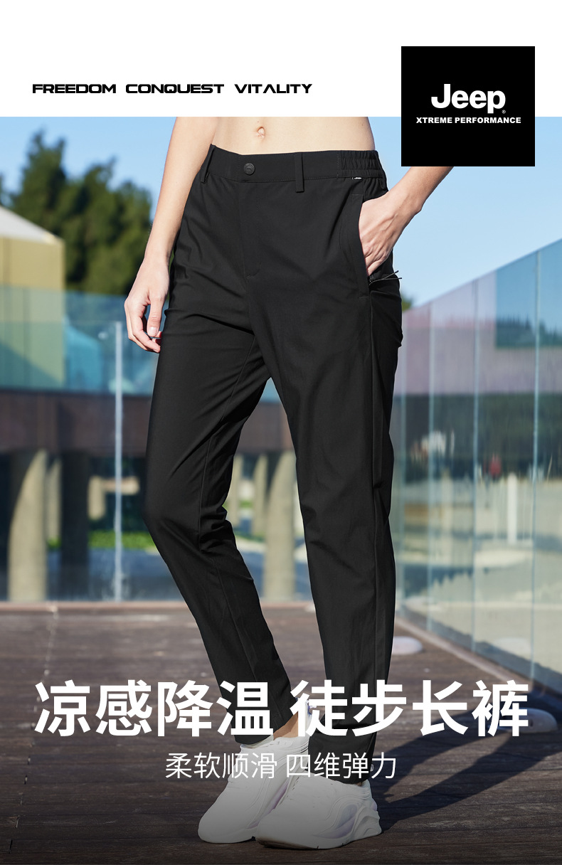 JEEP 运动裤女春夏新款长裤小脚休闲健身服跑步卫裤户外徒步长裤J212083809