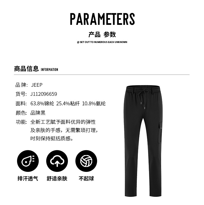 JEEP 运动修身裤长裤男士春夏季新款直筒宽松休闲男潮流透气舒适裤J112096659