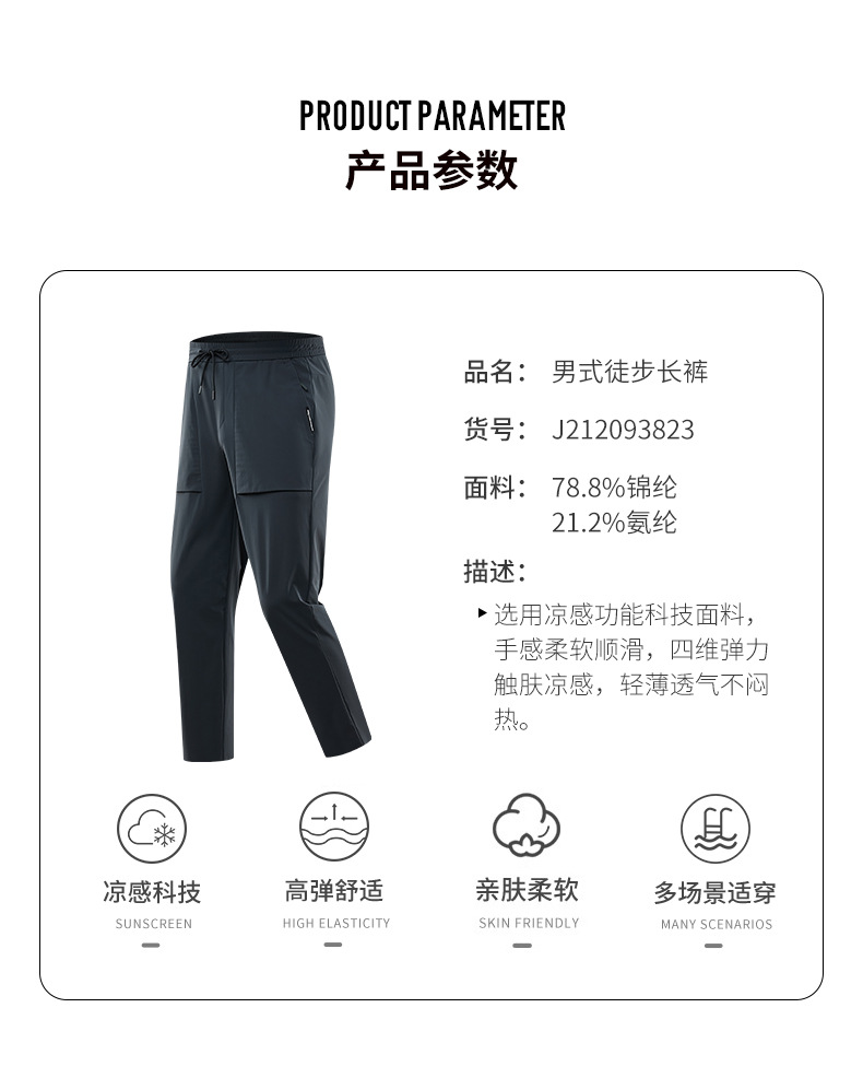 JEEP 卫裤男士春夏季新款运动高弹舒适潮流工装裤凉感科技户外运动长裤J212093823
