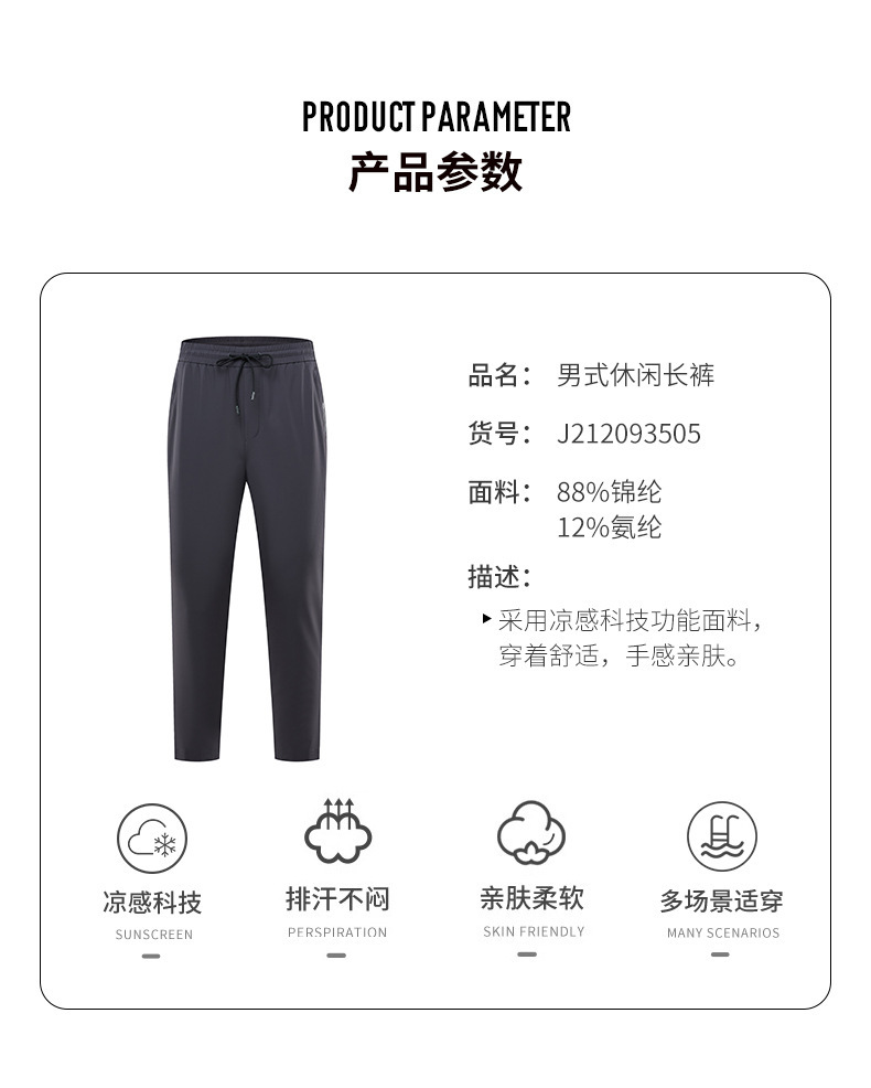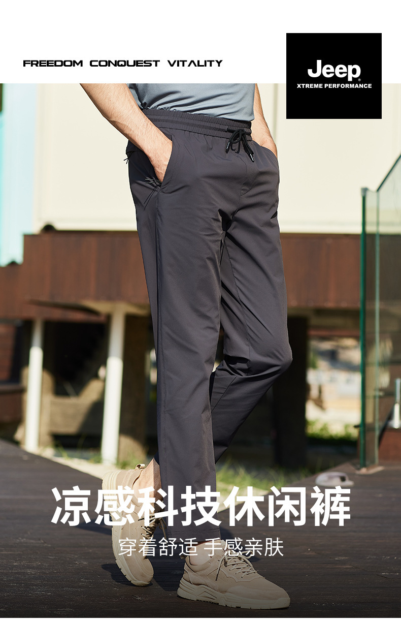 JEEP 春季新款男士商务休闲宽松百搭直筒长裤春夏男纯色长裤 J212093505