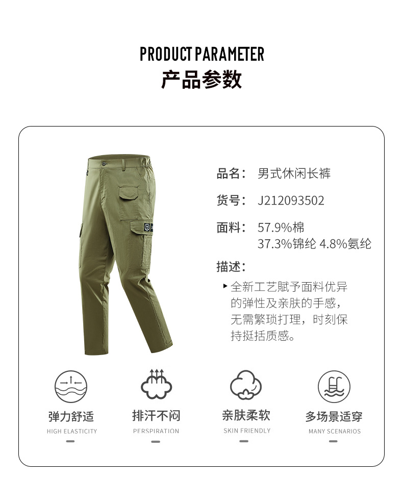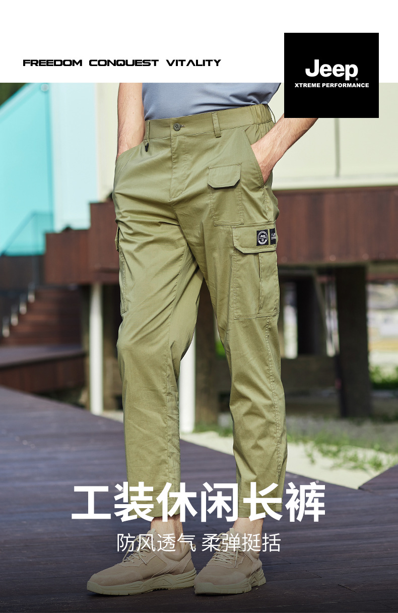 JEEP 新款工装裤子男春夏季宽松直筒男士休闲裤修身百搭九分裤潮流 J212093502
