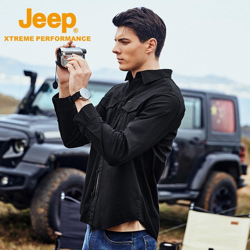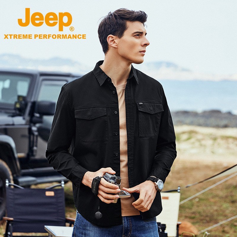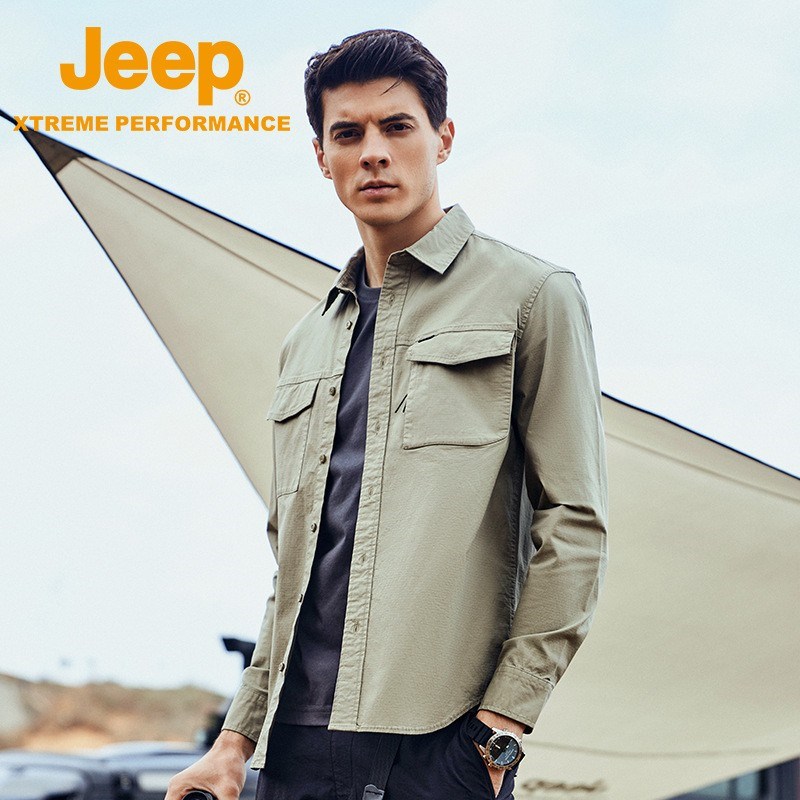 JEEP 春秋季新款工装衬衫时尚翻领外套宽松休闲长袖衬衫J212094620