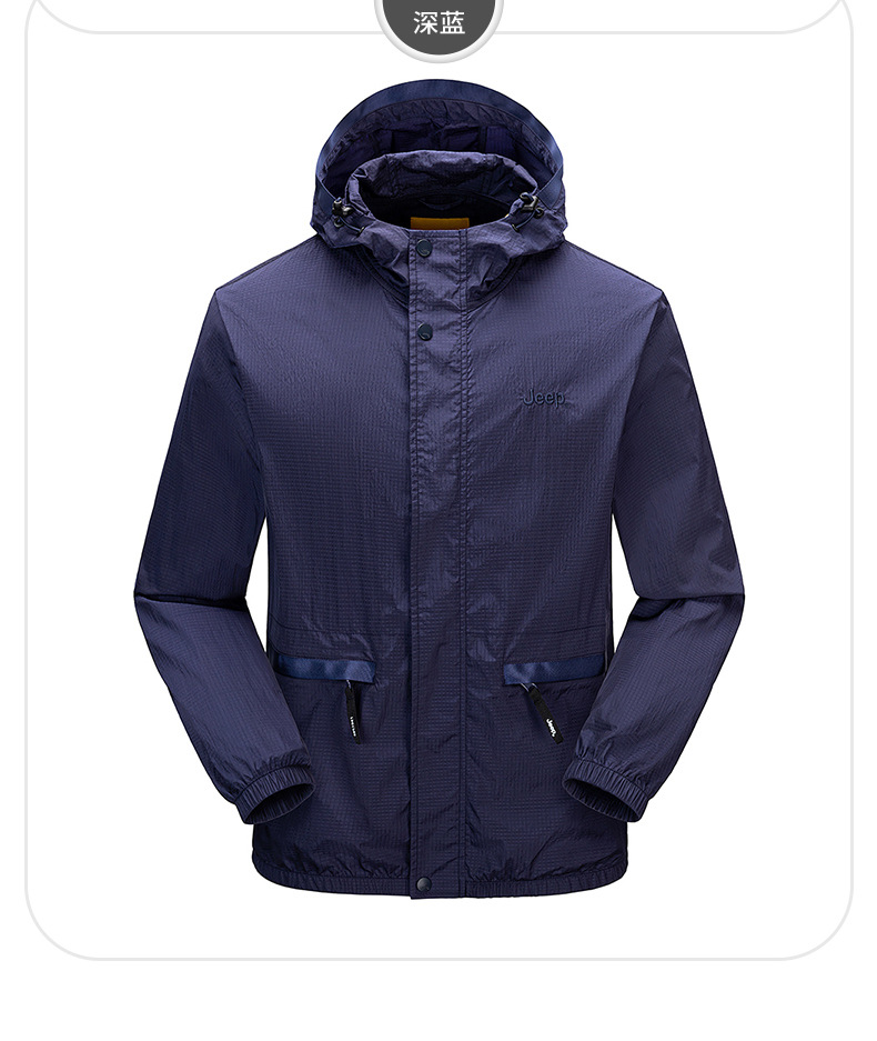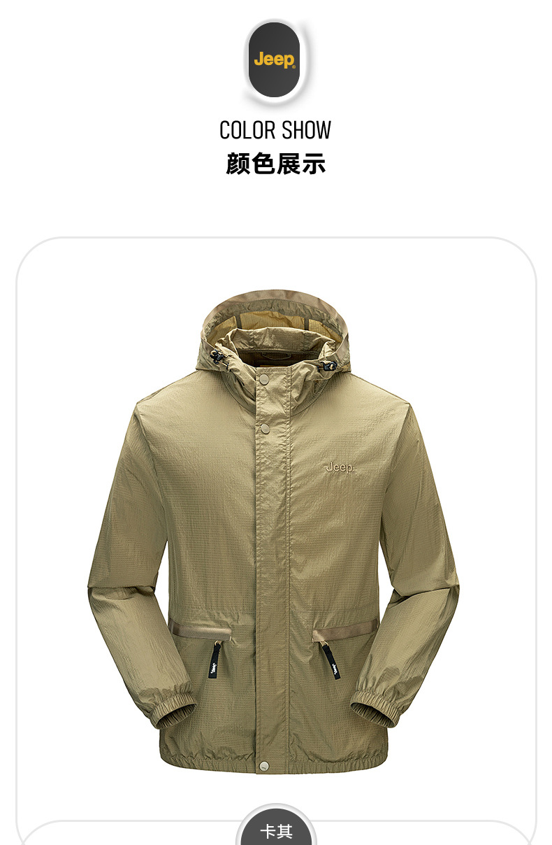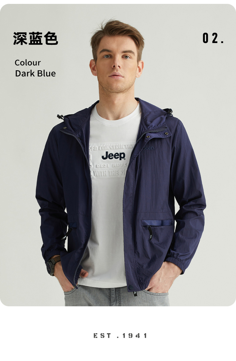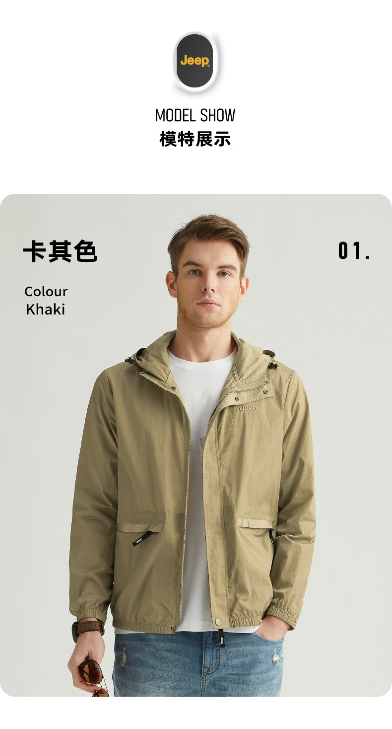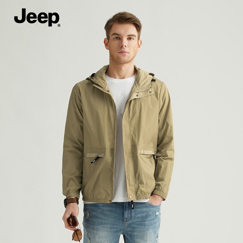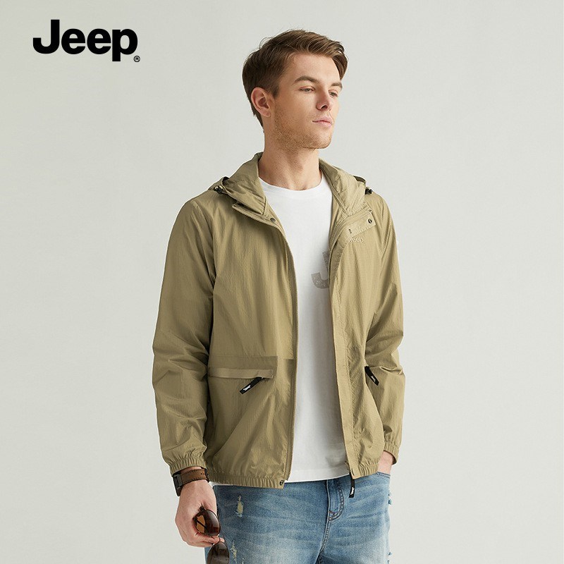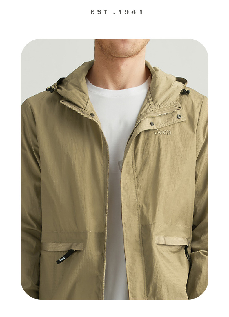 JEEP 春秋新款拉链连帽休闲侧缝插袋青年薄款粒绒宽松型夹克P221MWJ063