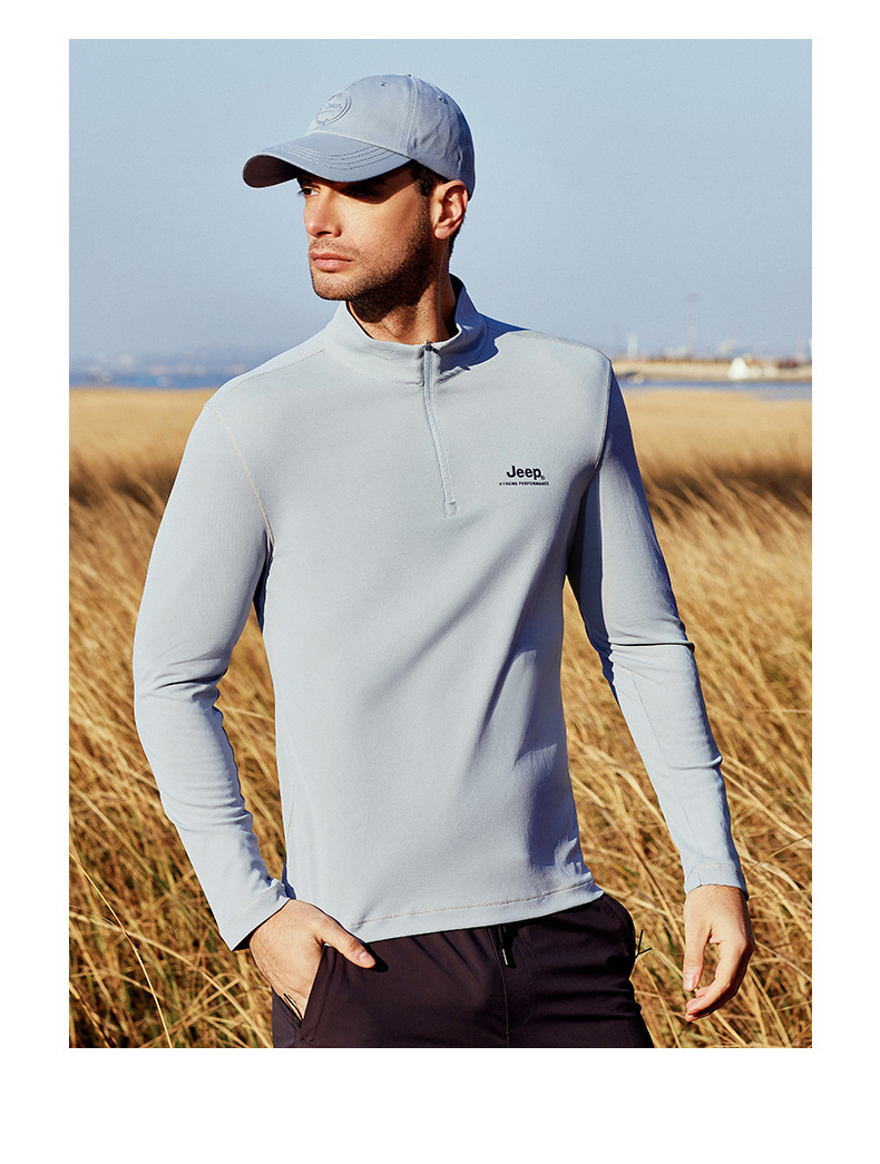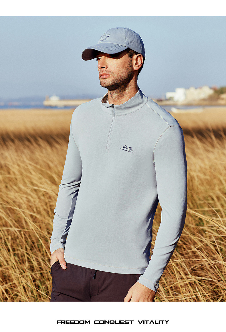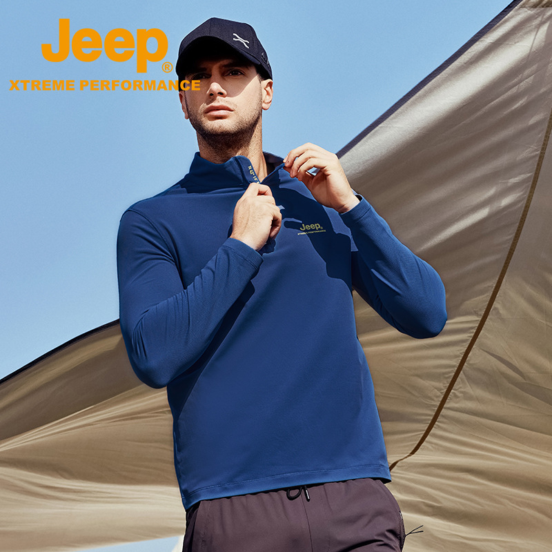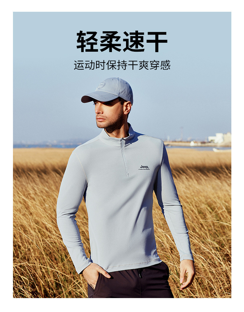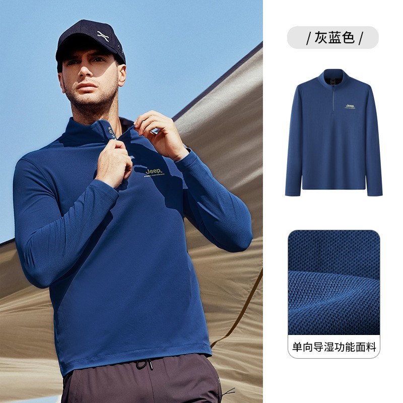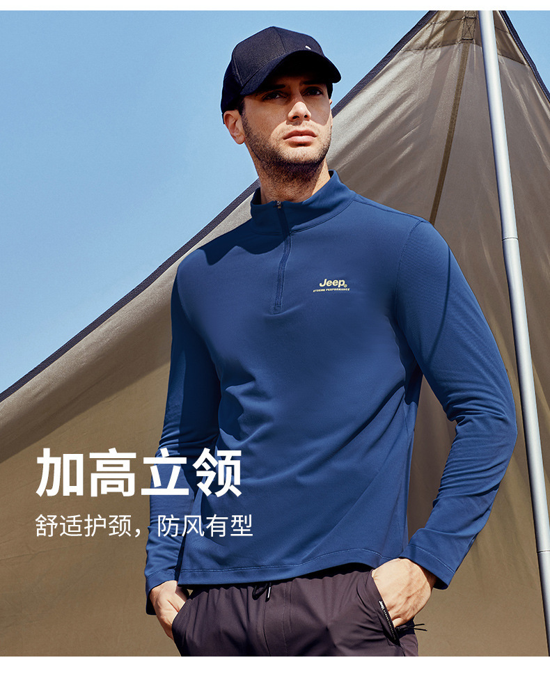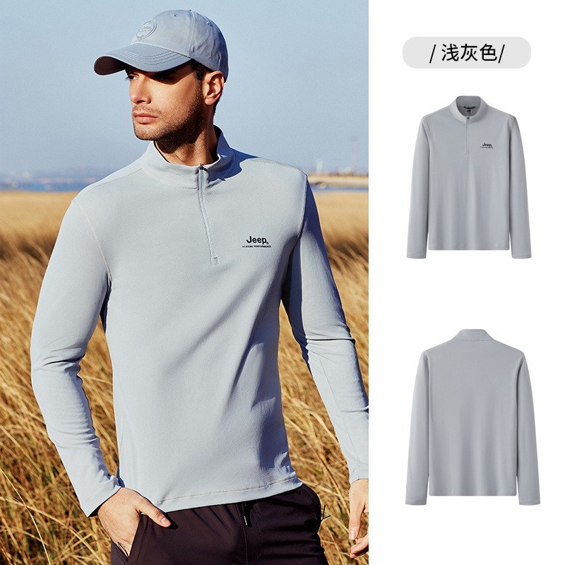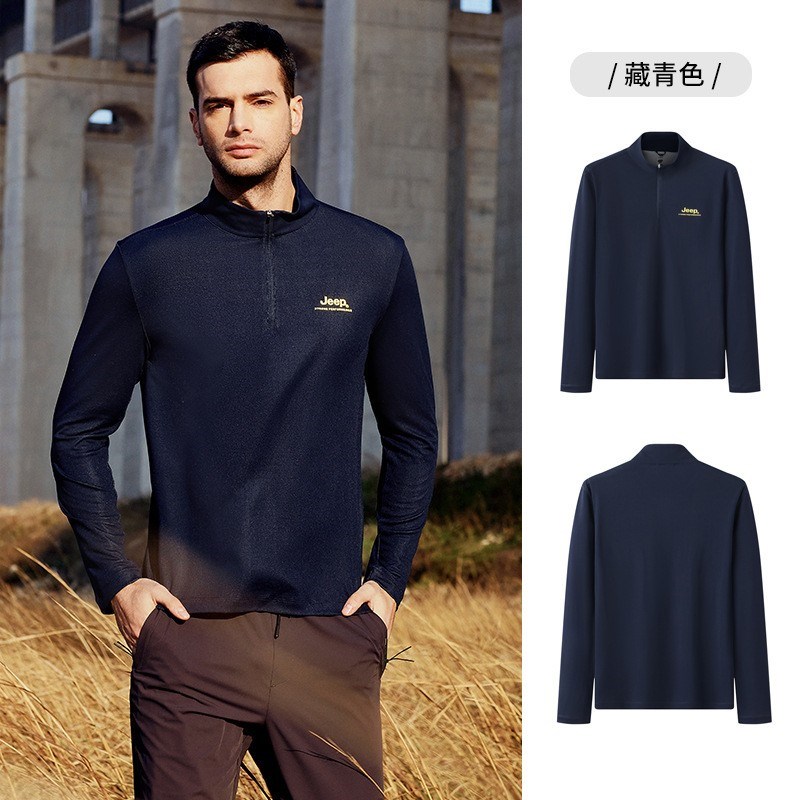 JEEP 男士春秋季新款简约清凉透气柔软舒适立领户外休闲长袖T恤 J212094525