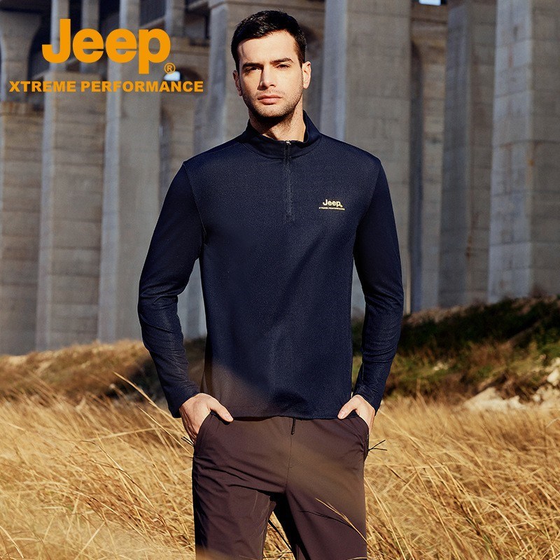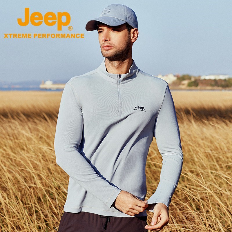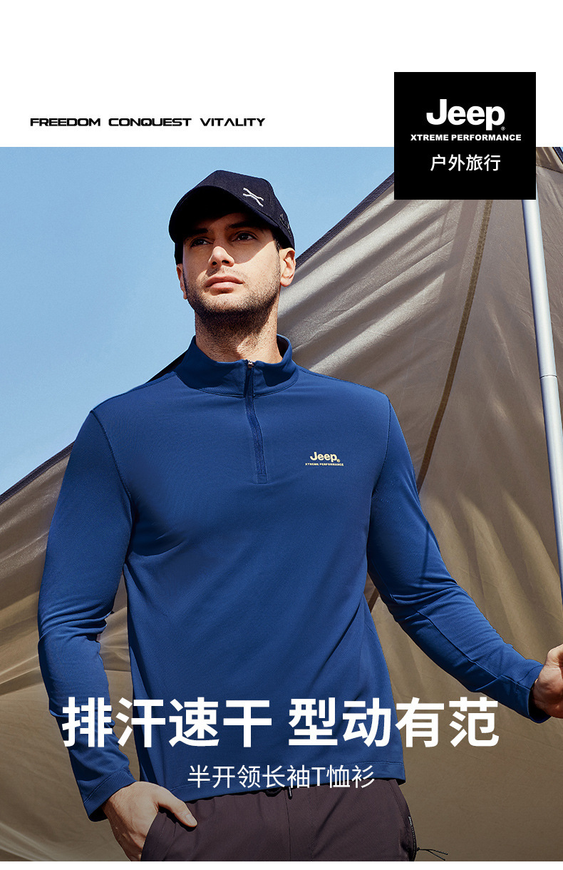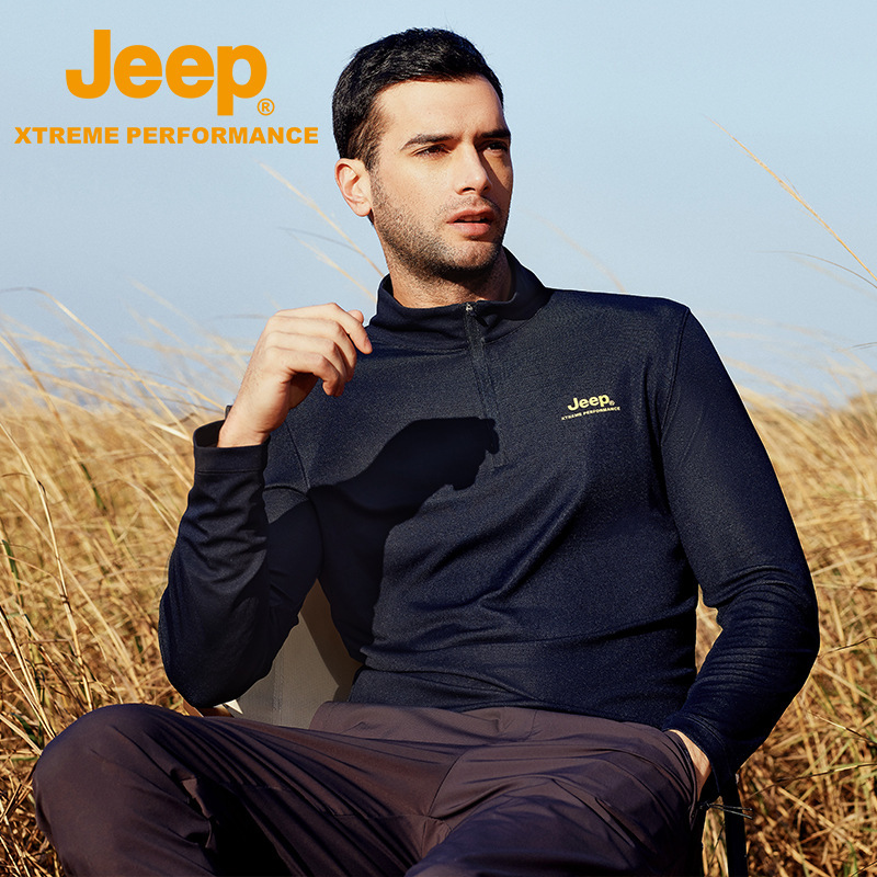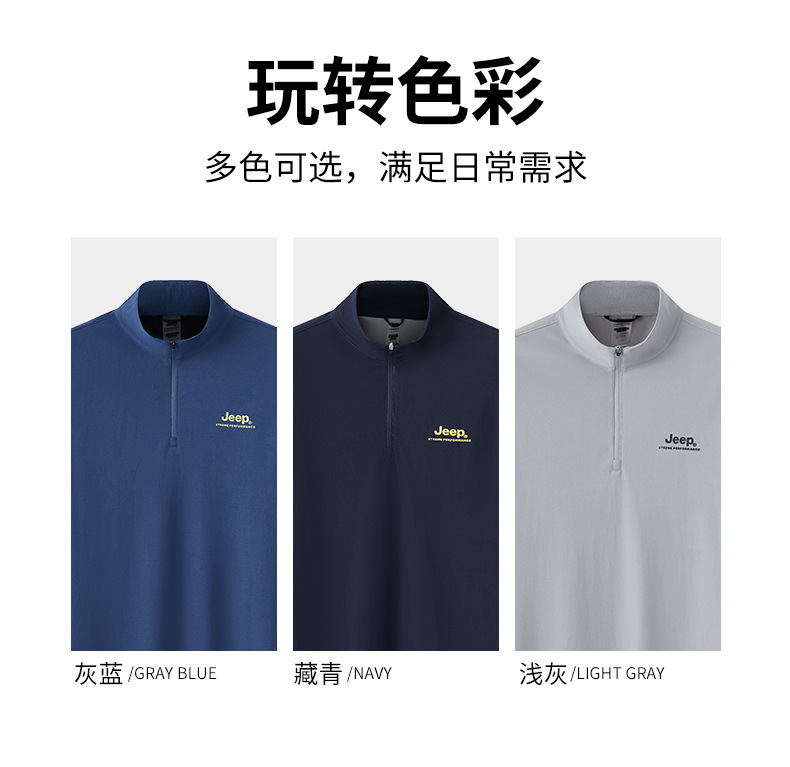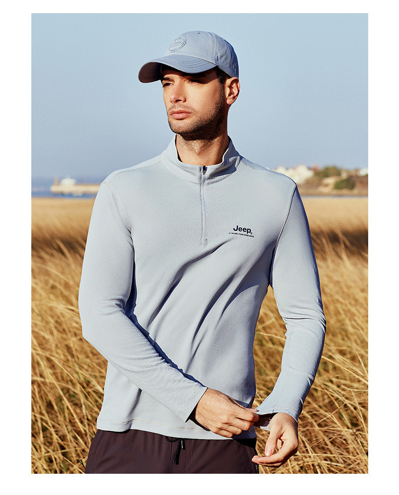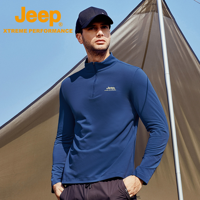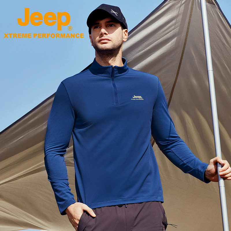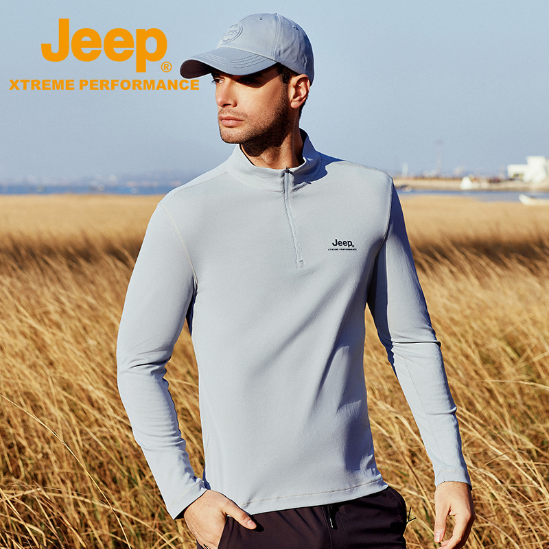 JEEP 男士春秋季新款简约清凉透气柔软舒适立领户外休闲长袖T恤 J212094525