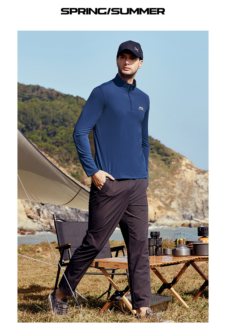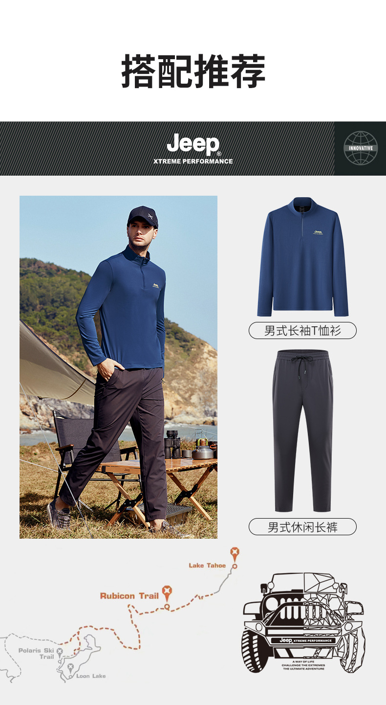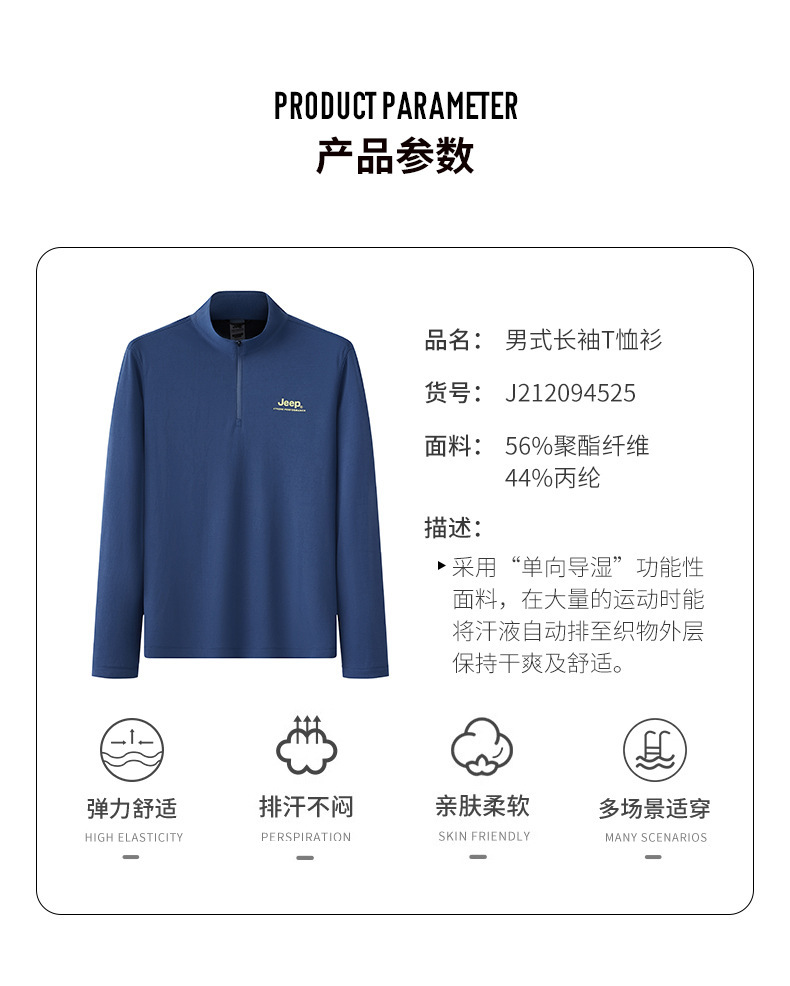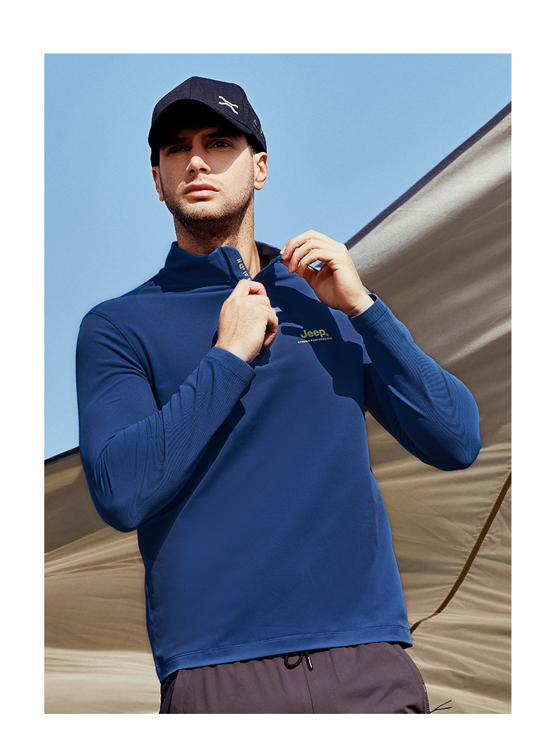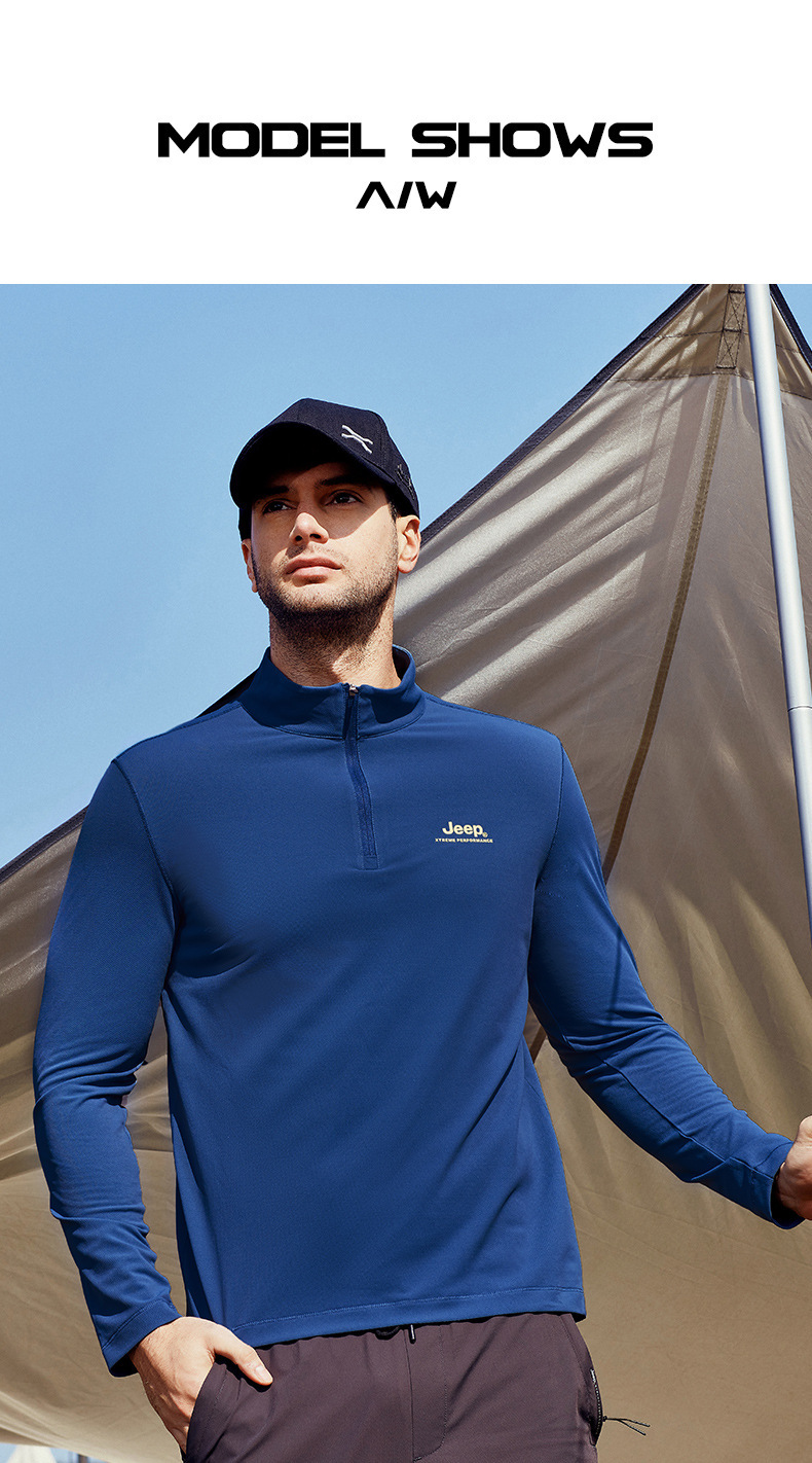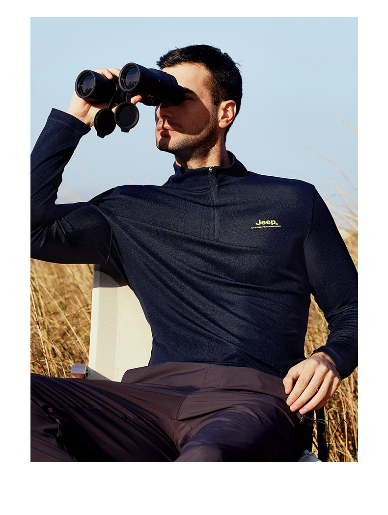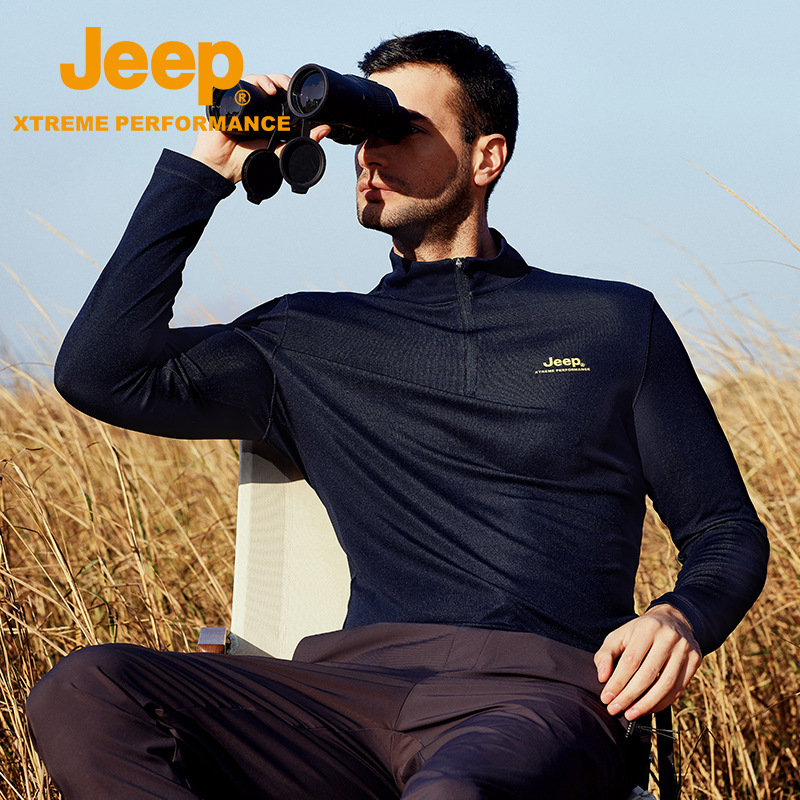 JEEP 男士春秋季新款简约清凉透气柔软舒适立领户外休闲长袖T恤 J212094525