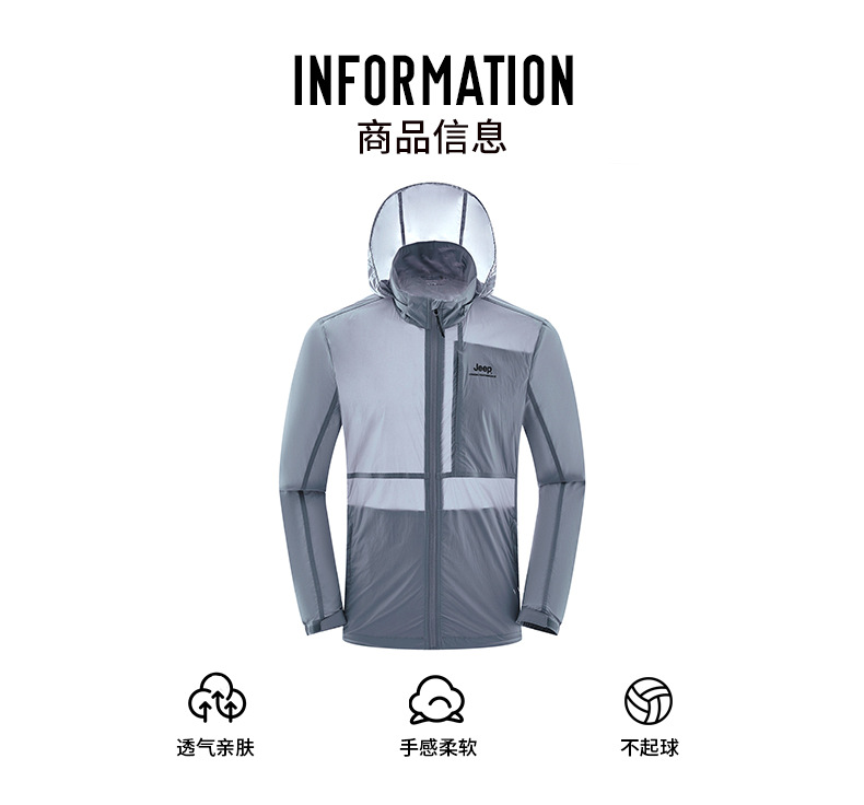 JEEP 防晒衣男士春夏季新款潮轻薄透气防紫外线皮肤衣户外运动风衣J112095285