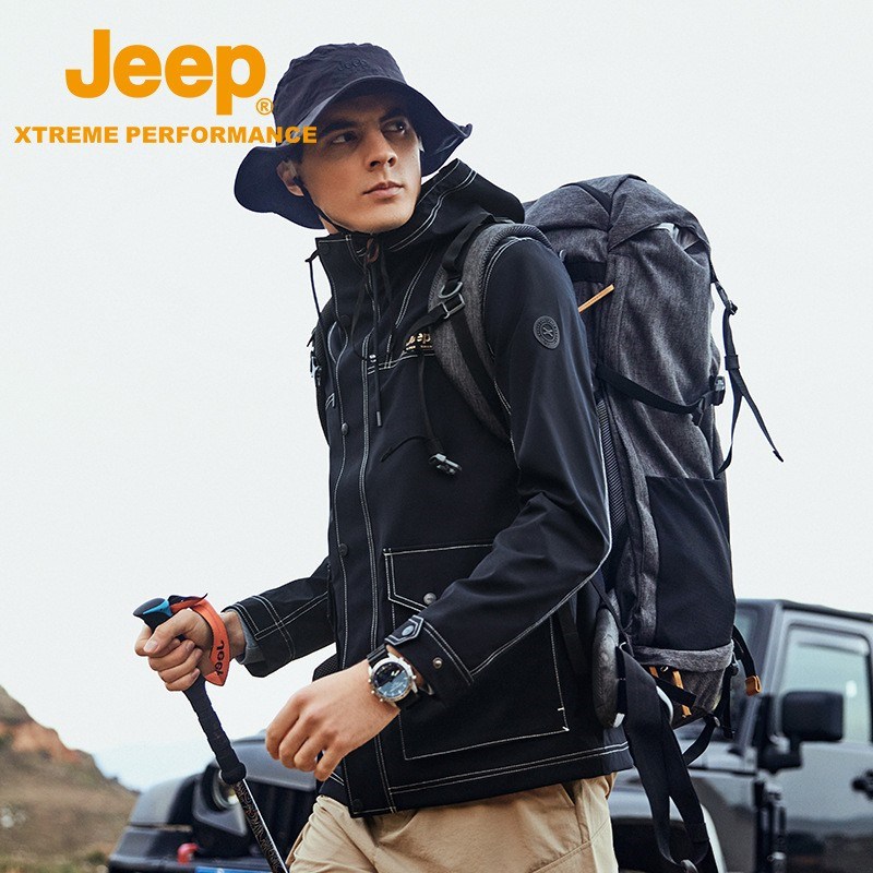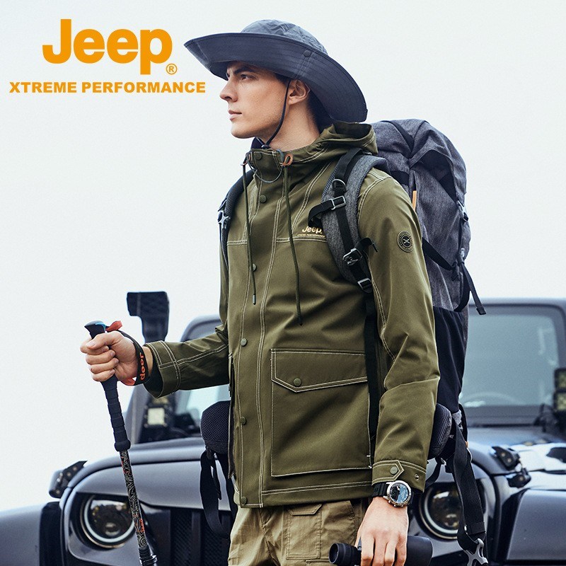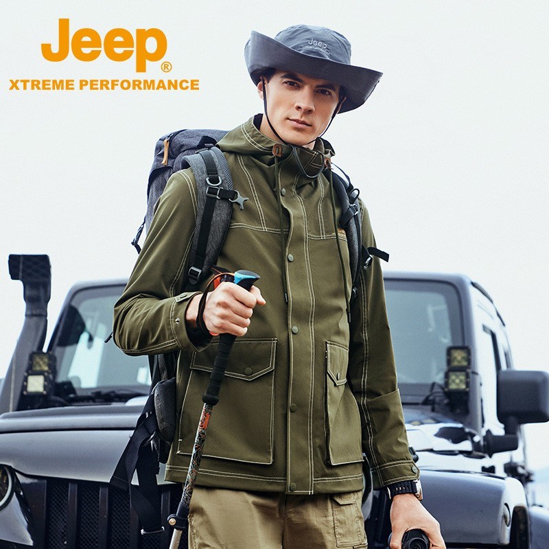 JEEP 男士两层冲锋衣防风放水户外野营登山探险连帽夹克外套J212094053