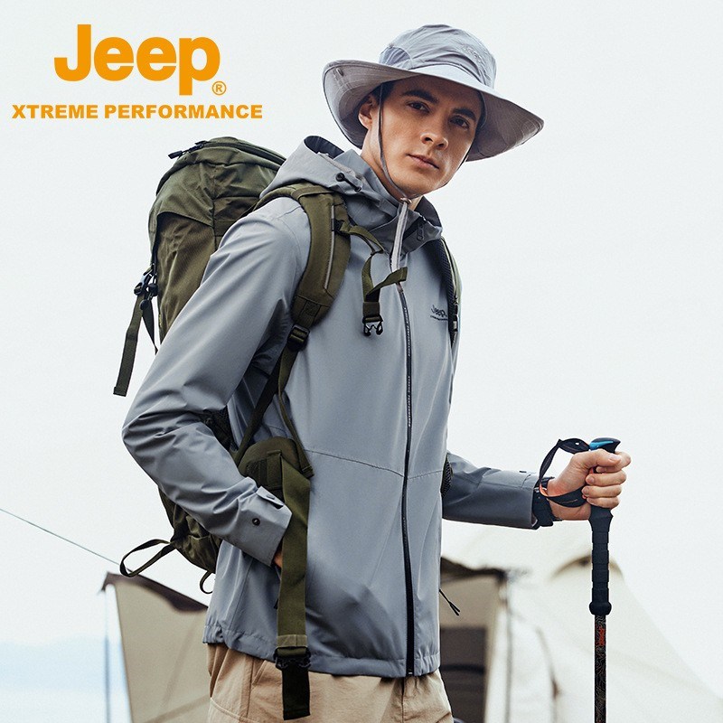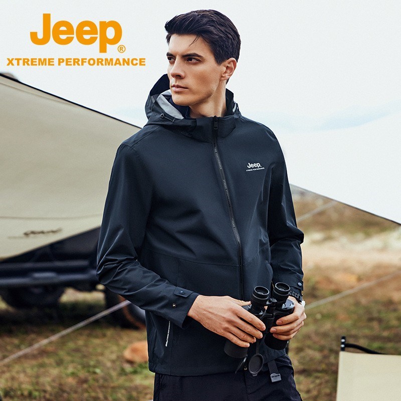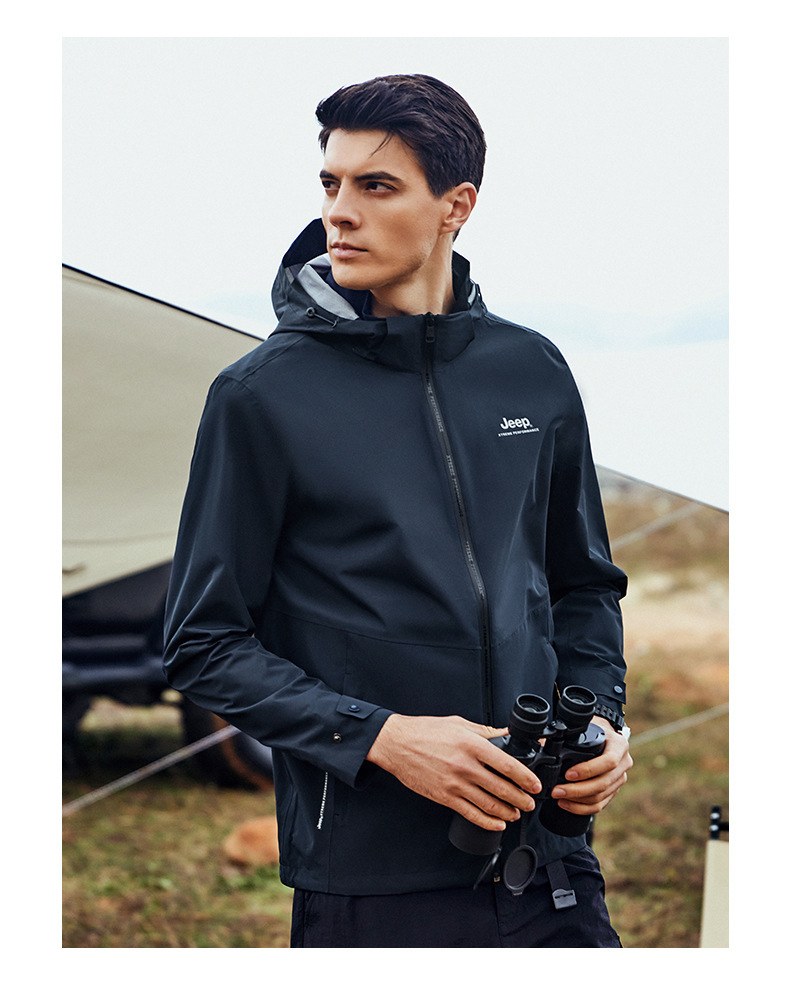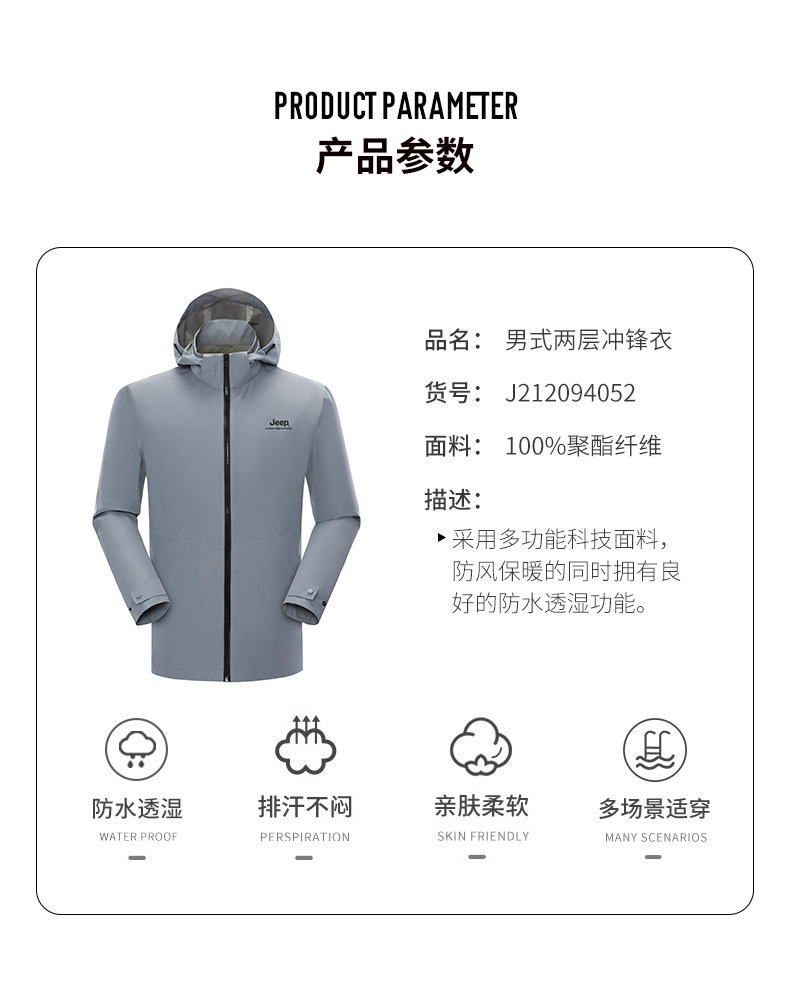 JEEP 春秋新软壳男士潮两层冲锋衣户外登山服防水防风连帽夹克外套 J212094052