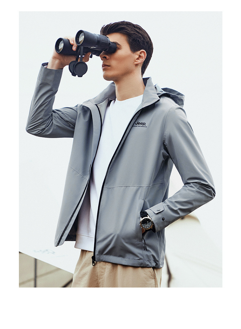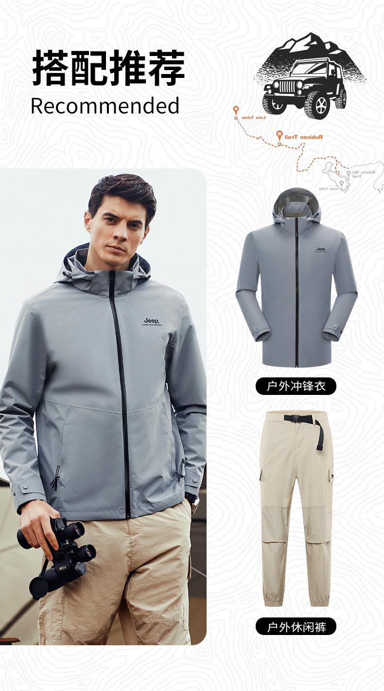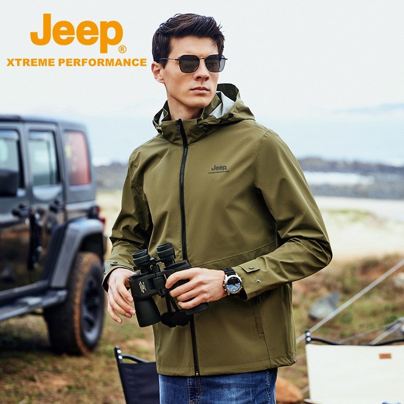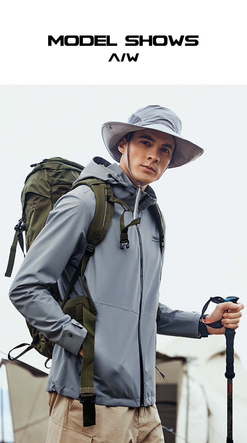 JEEP 春秋新软壳男士潮两层冲锋衣户外登山服防水防风连帽夹克外套 J212094052