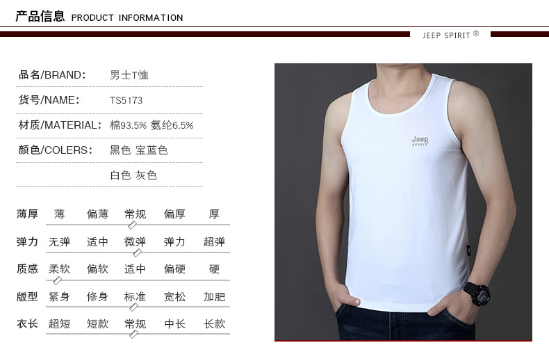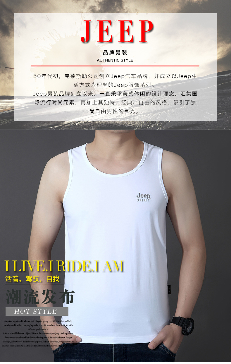 JEEP SPIRIT春夏新款背心男棉质打底内搭运动透气舒适修身男士内衣背心 TS5173
