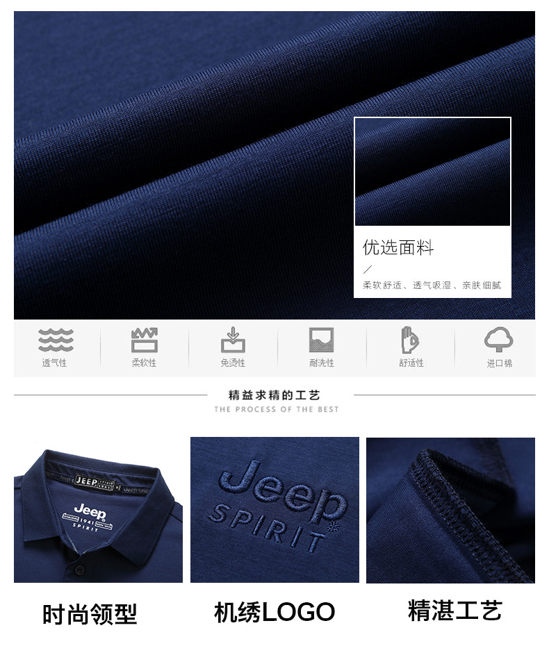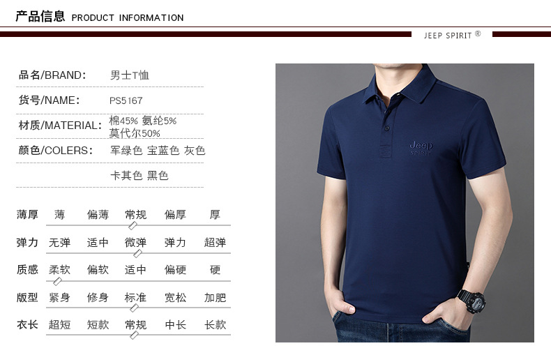 JEEP SPIRIT短袖T恤春夏新款男夏季商务时尚修身翻领纯色成熟POLO衫短袖PS5167