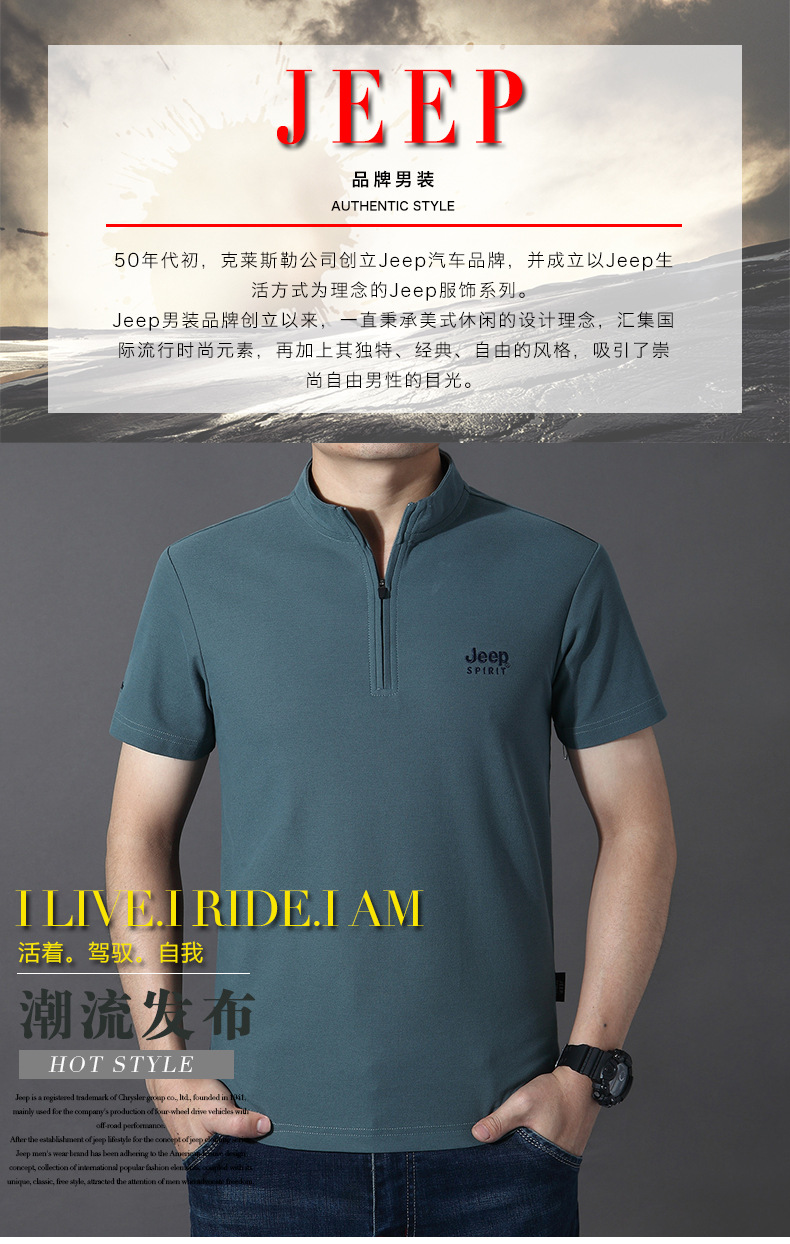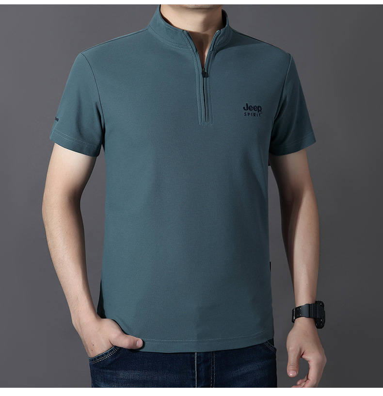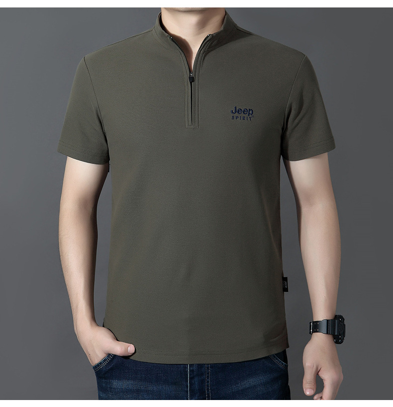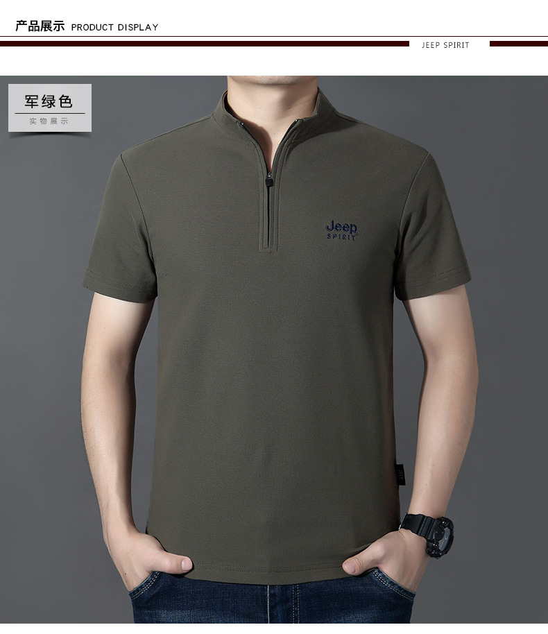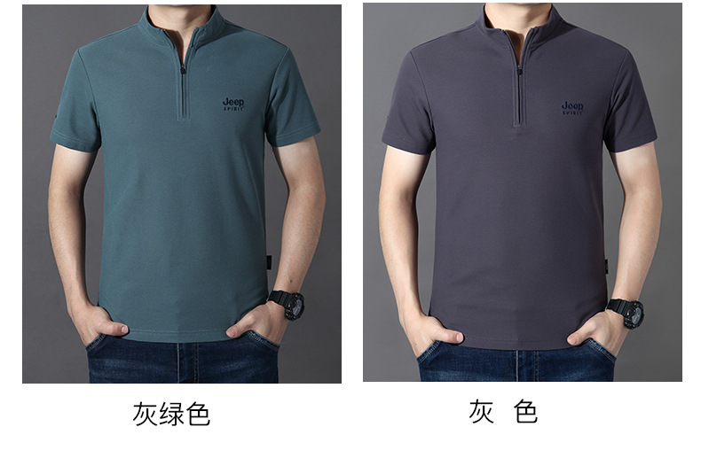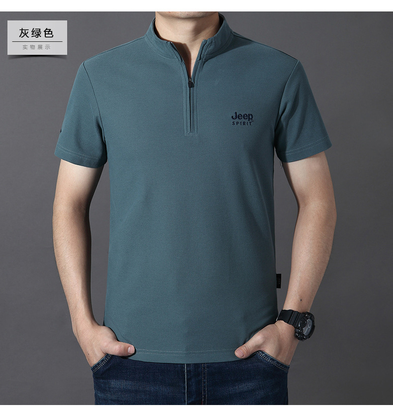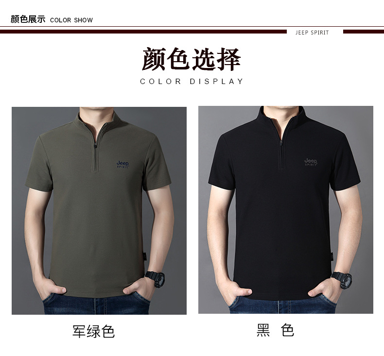 JEEP SPIRIT中年短袖T恤男士春夏商务时尚修身翻领纯色成熟立领短袖POLO衫潮PS5166