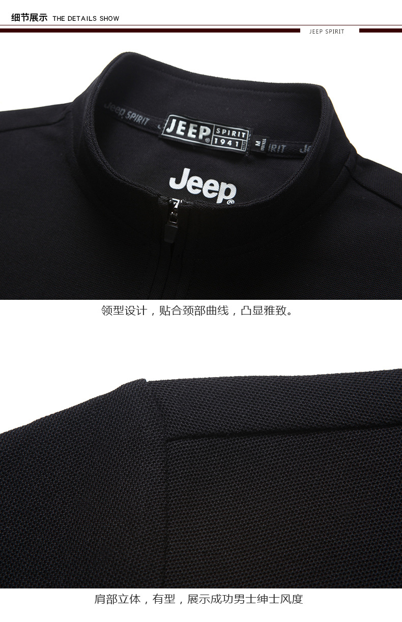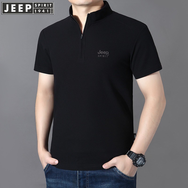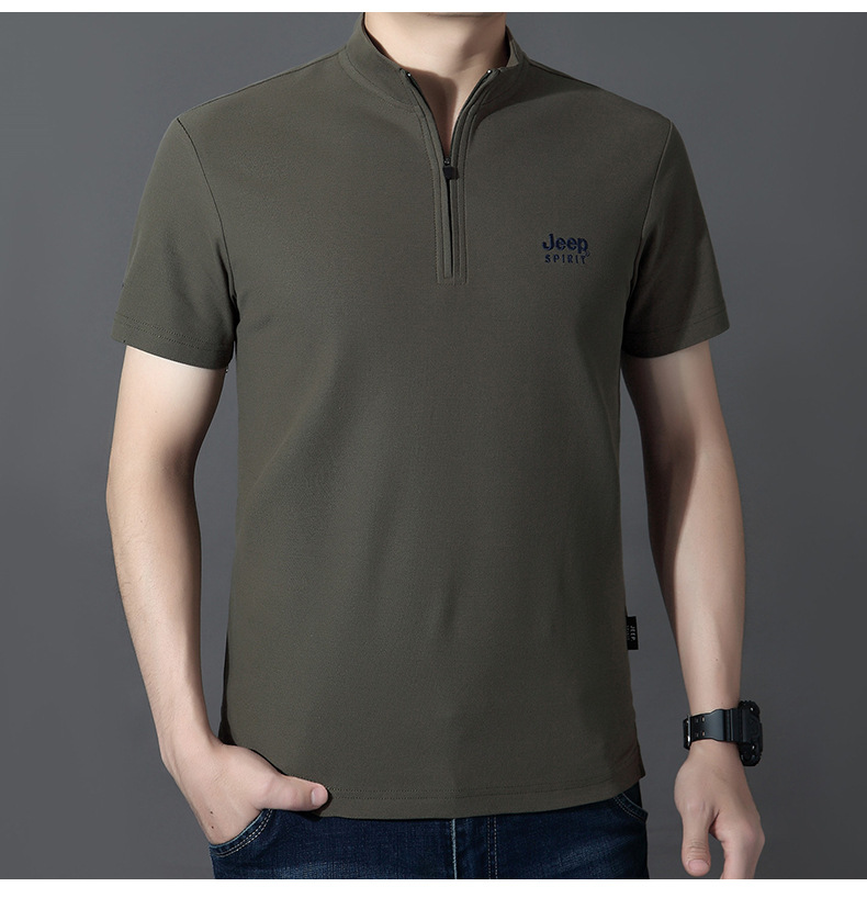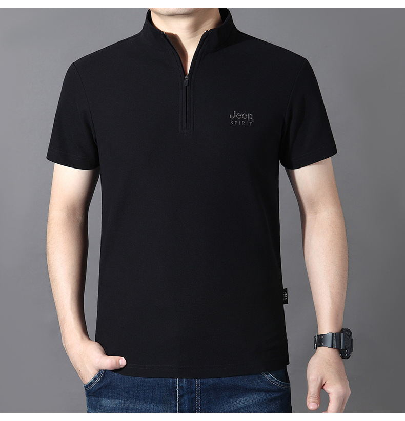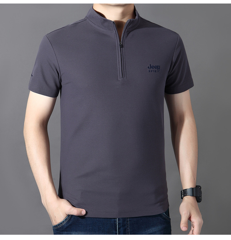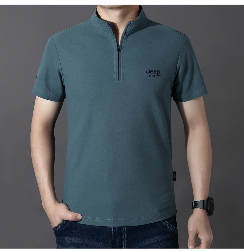 JEEP SPIRIT中年短袖T恤男士春夏商务时尚修身翻领纯色成熟立领短袖POLO衫潮PS5166