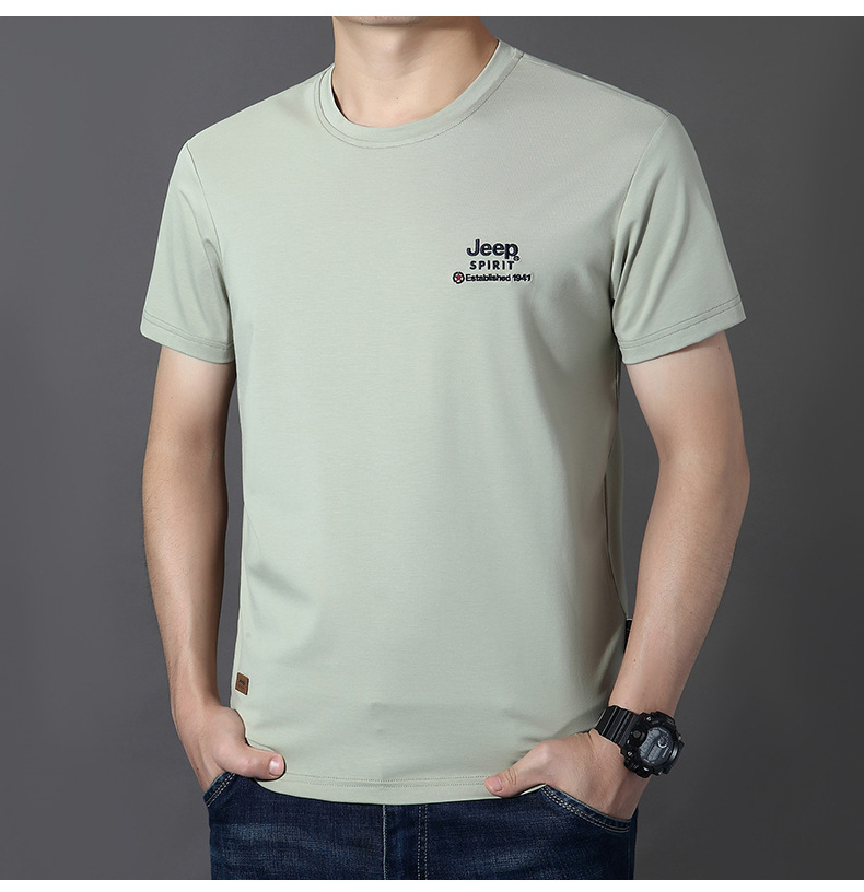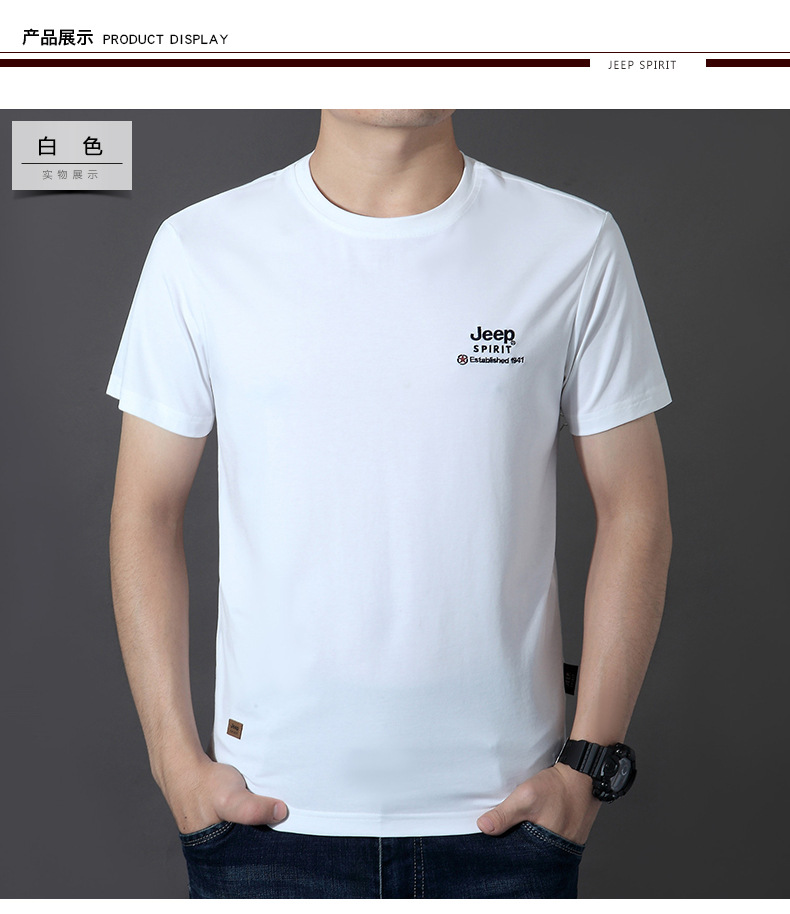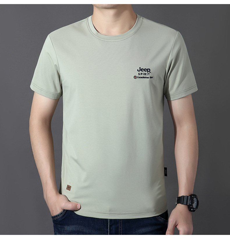 JEEP SPIRIT新款简约短袖T恤男春夏季商务成熟时尚修身翻领纯色薄款舒适TS5169