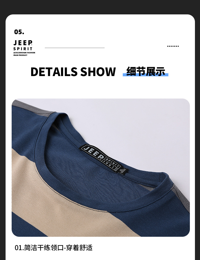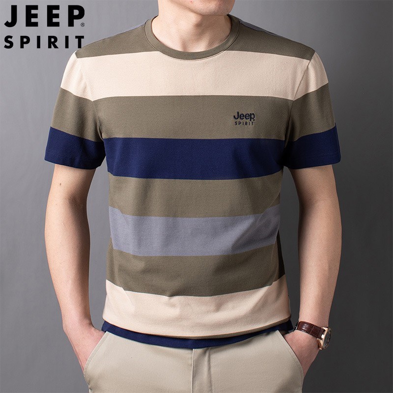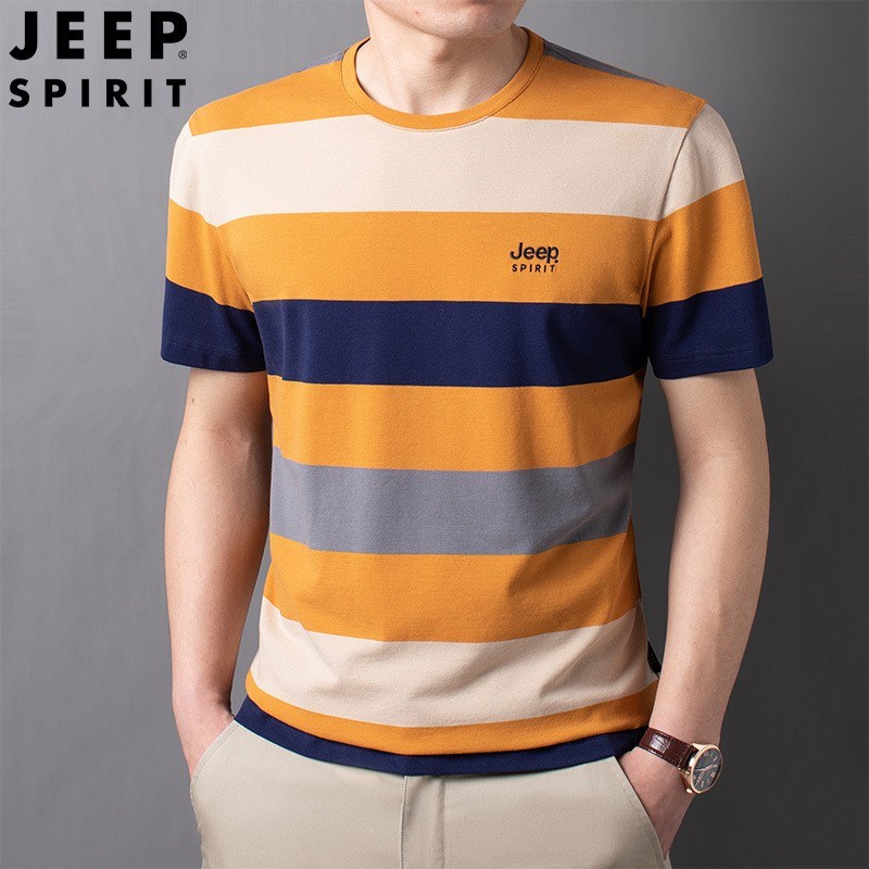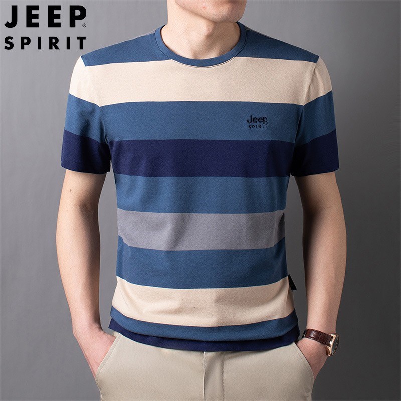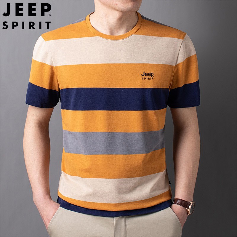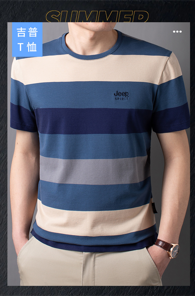 JEEP SPIRIT男士条纹拼色短袖T恤夏新款圆领打底青中年商务休闲体恤上衣单穿 H-9916
