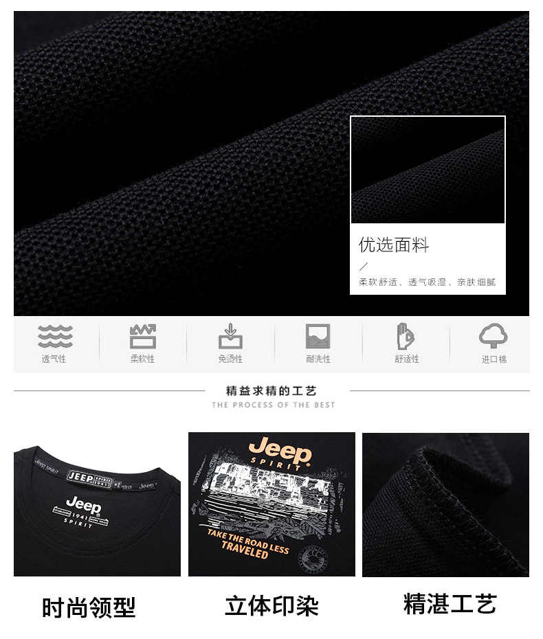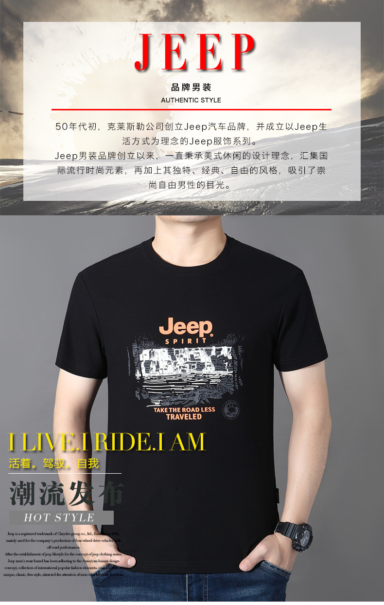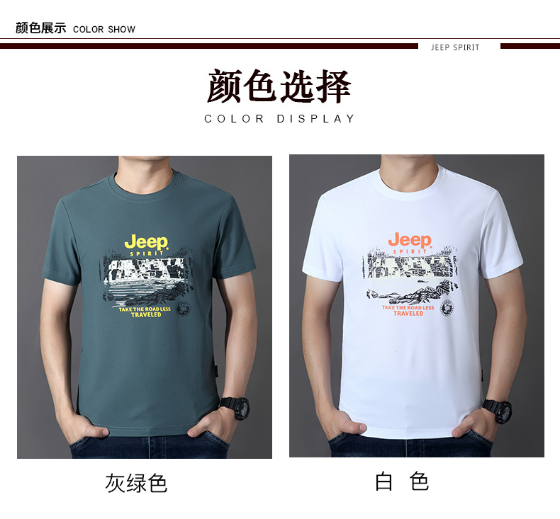 JEEP SPIRIT短袖T恤男新款春夏季中年时尚修身翻领印花时尚舒适透气半袖 TS5172