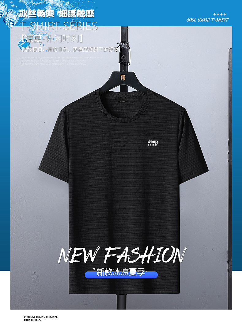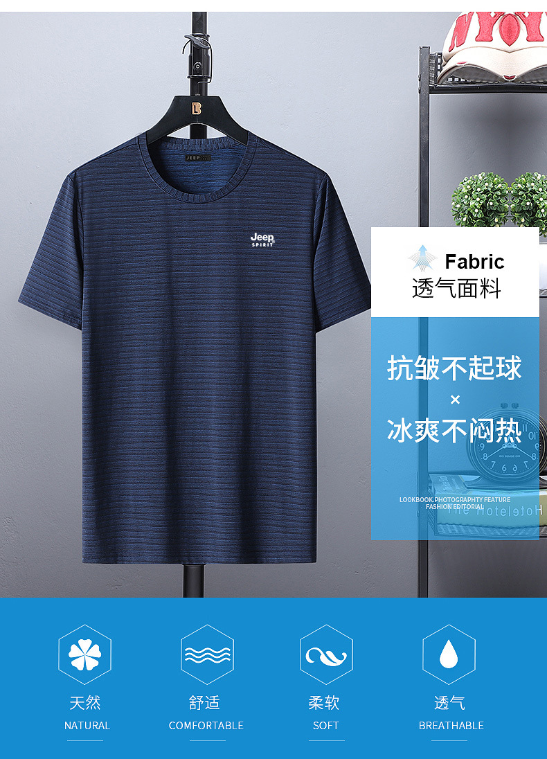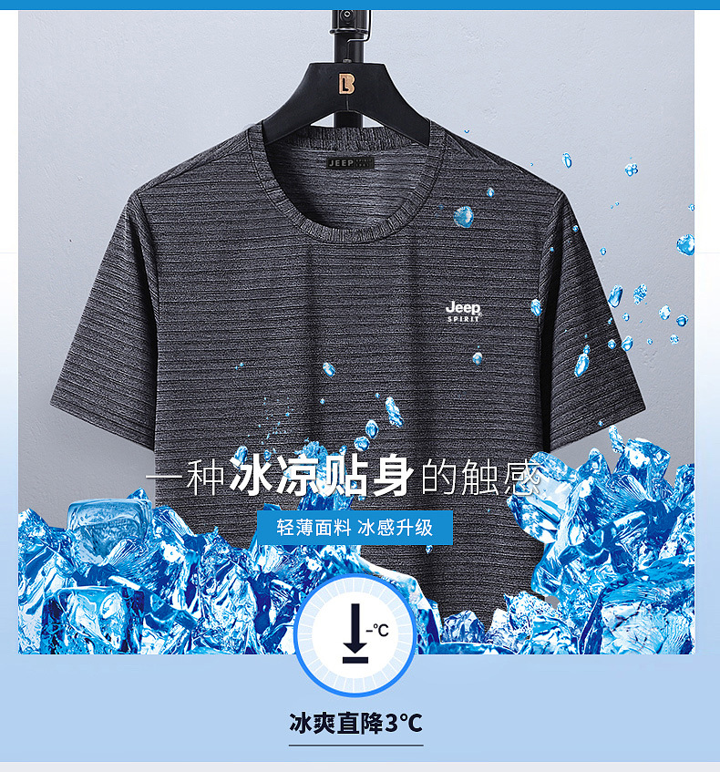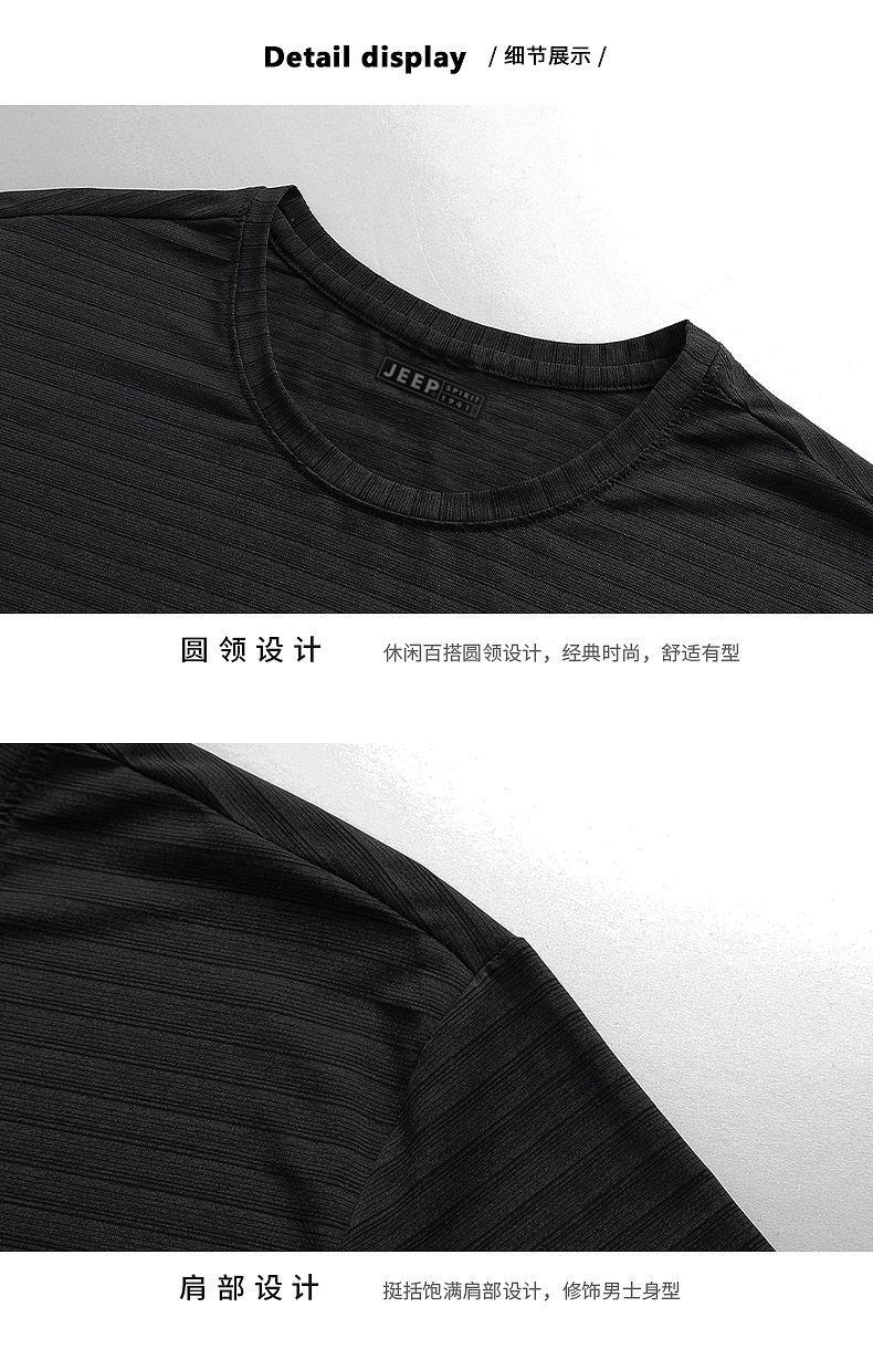 服饰配饰>男装>T恤> JEEP SPIRIT健身训练t恤跑步上衣休闲圆领打底衫男春夏新款运动短袖单穿 HB-2130