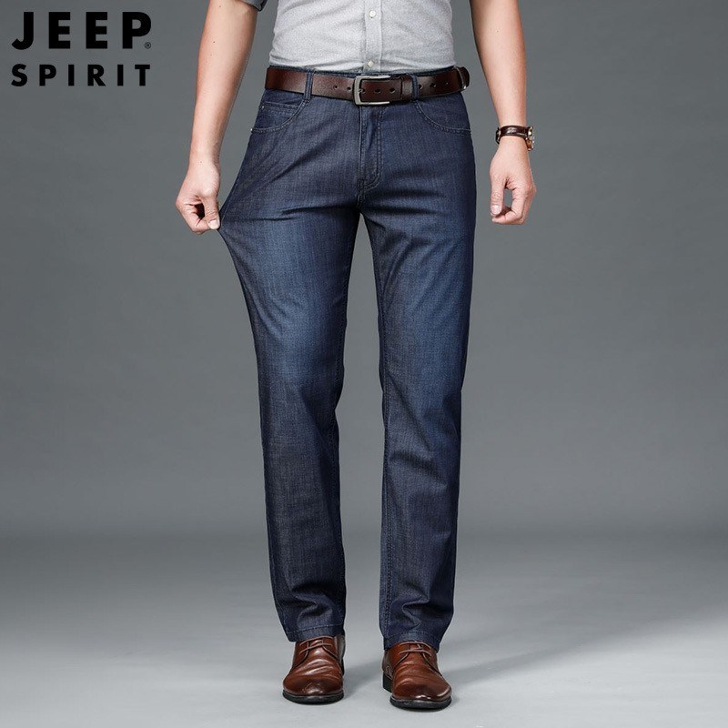JEEP SPIRIT牛仔裤春夏新款男士中年商务休闲宽松直筒男裤百搭弹力长裤子J133