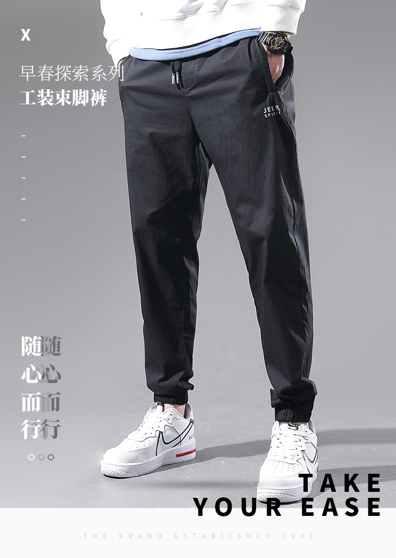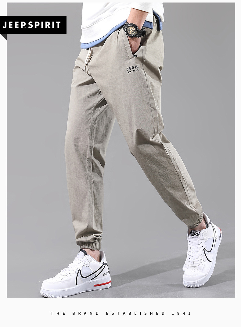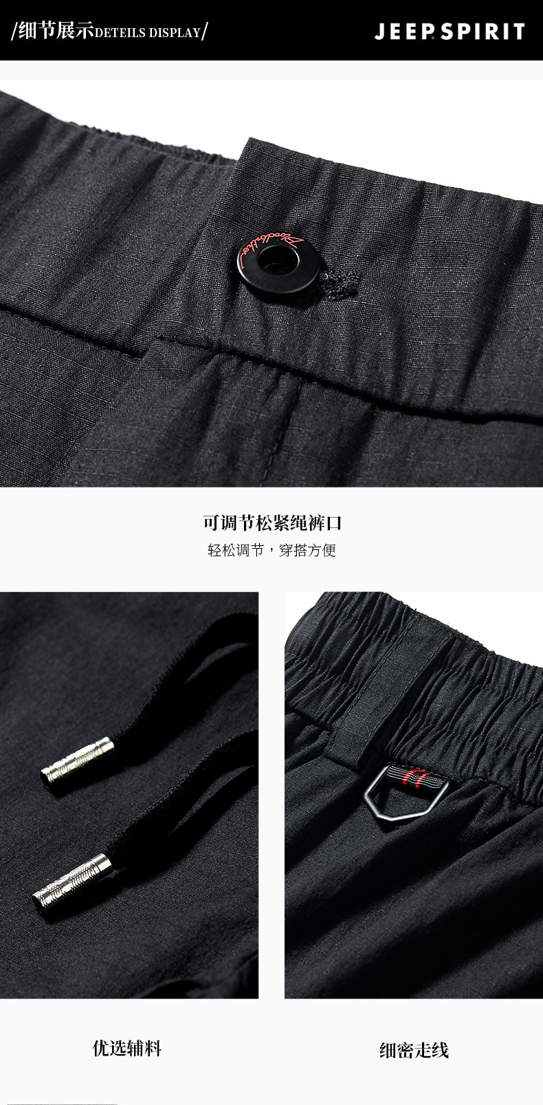 服饰配饰>男装>休闲裤> JEEP SPIRIT春秋季新款微弹青年弹力面料中腰纯色休闲长裤HDS0751