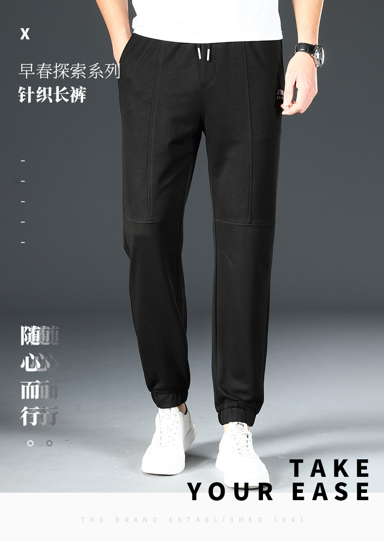 JEEP SPIRIT时尚运动裤长裤男士春秋季新款透气舒适修身休闲针织男束脚裤子HDS0780